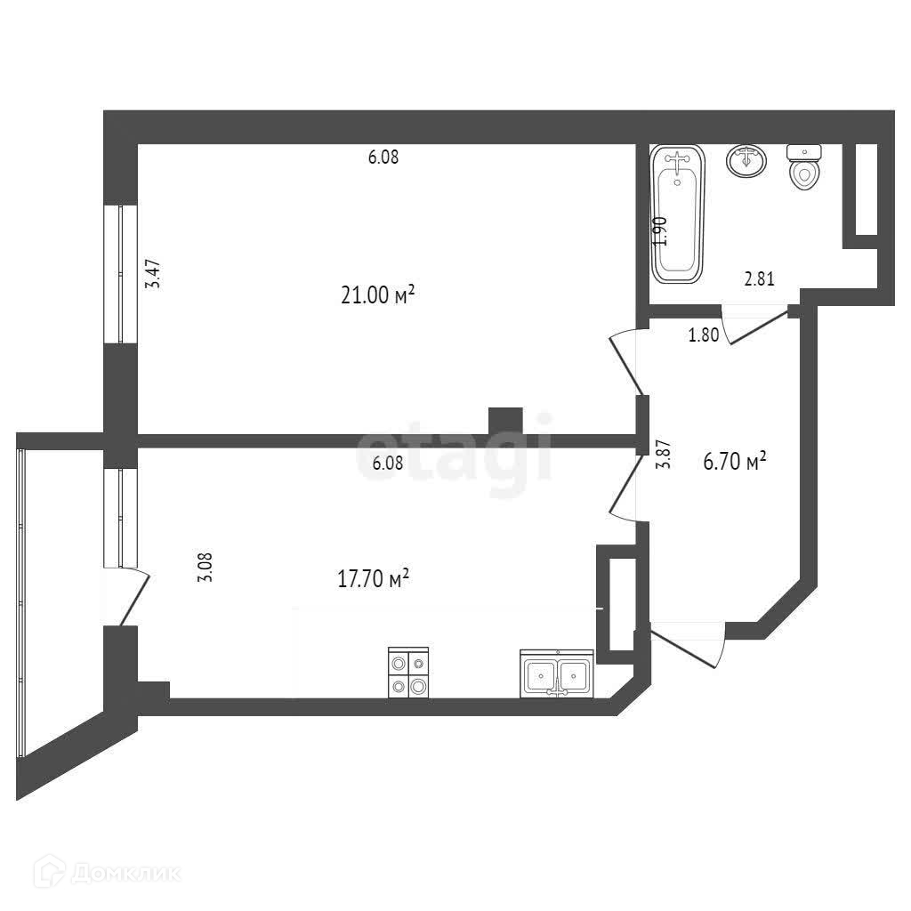 Балкон, лоджия 1 балкон