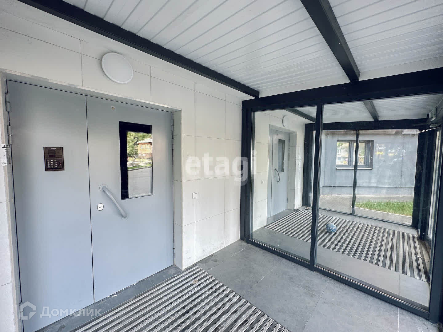 Красивый просторный подъезд, вход в подъезд через современный стеклянный тамбур на уровне земли. Два лифта. Видеонаблюдение.