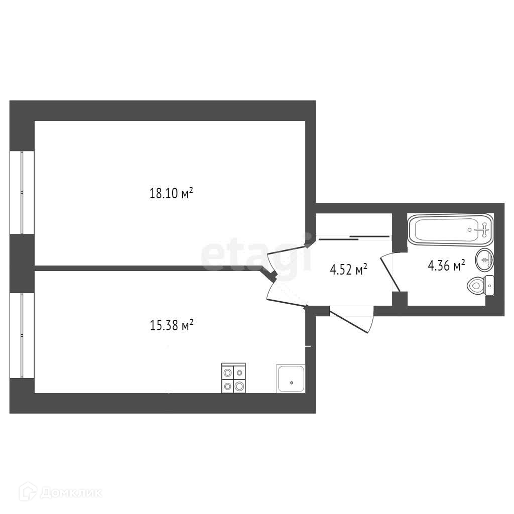 Отличная планировка: большая кухня 15.38м.кв., комната 18,1 м.кв.