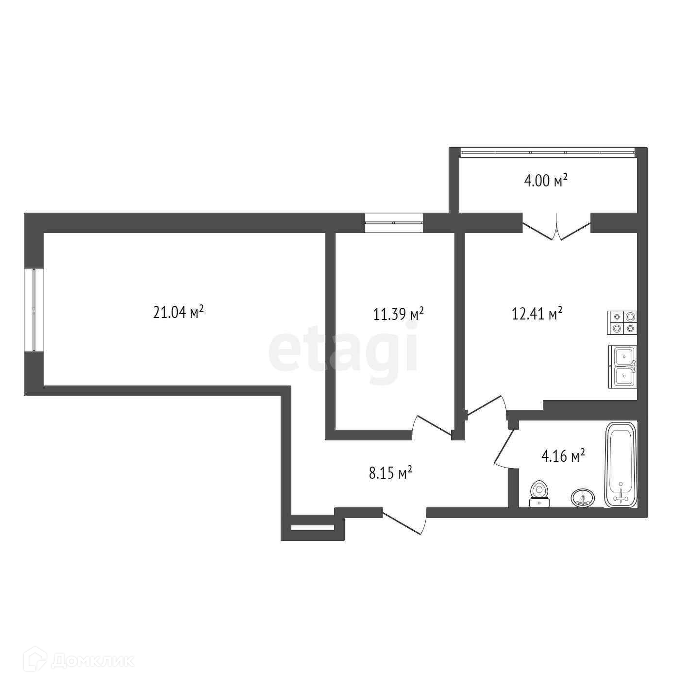 Площадь кухни 12.41 м2