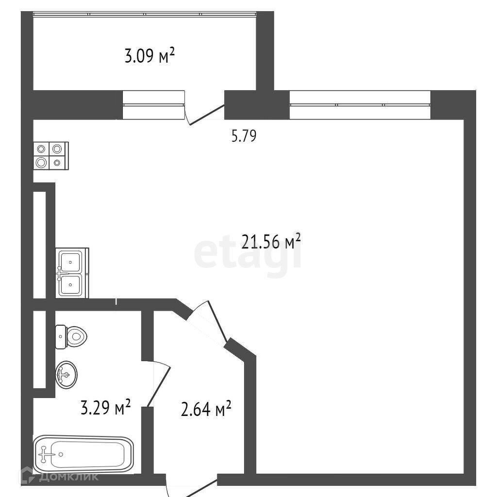 Балкон, лоджия 1 балкон