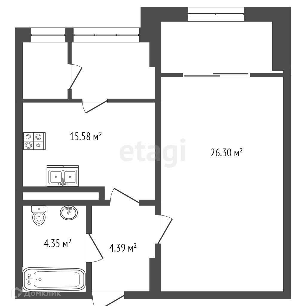 Площадь кухни 15.58 м2
