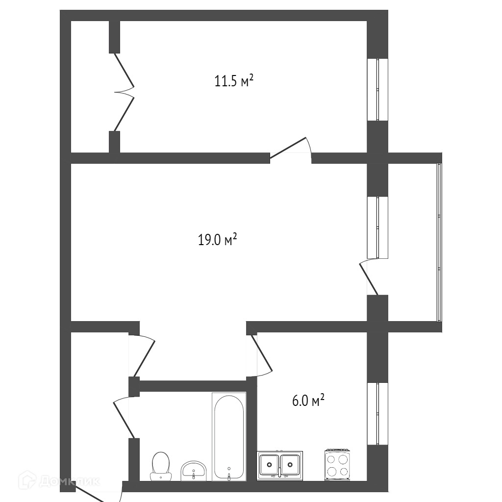 Общая площадь 45.5 м2