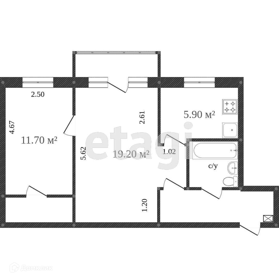 Общая площадь 44.7 м2