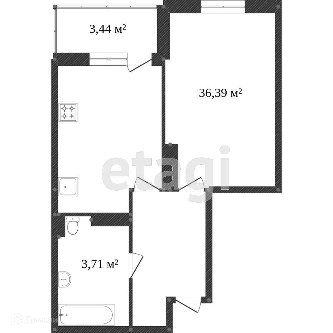 Общая площадь 41.2 м2