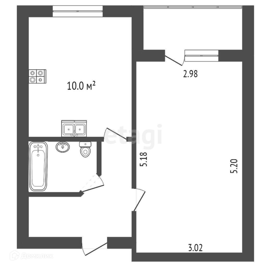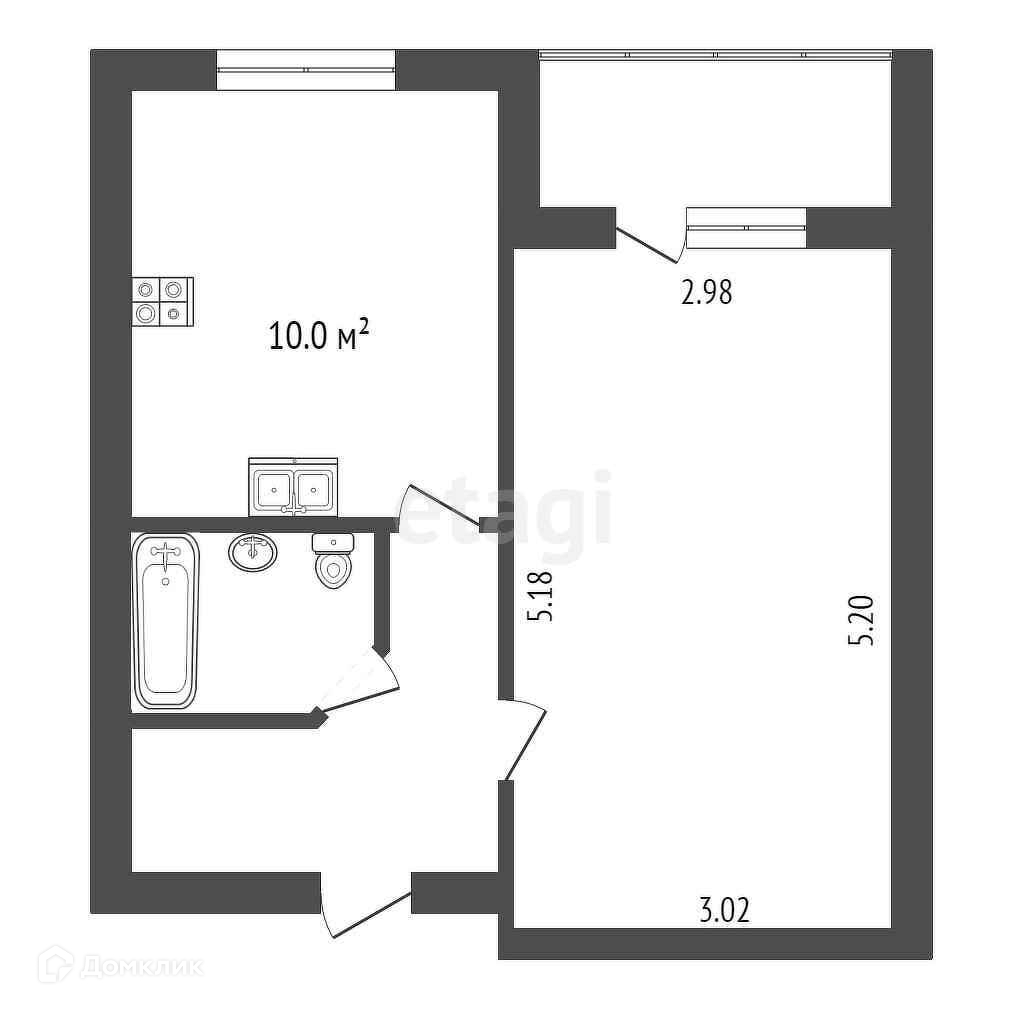 Общая площадь 33.2 м2