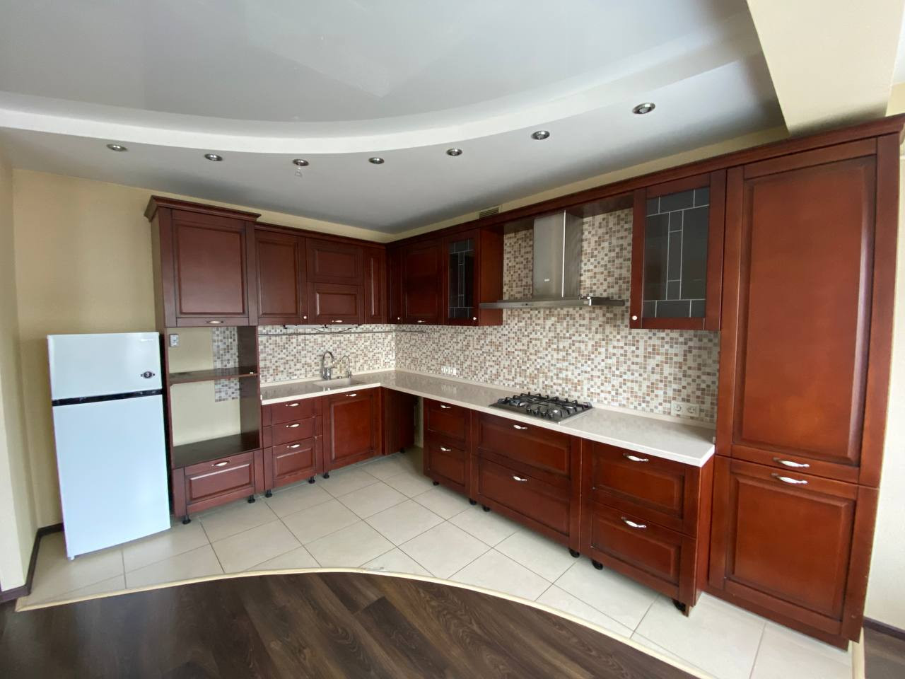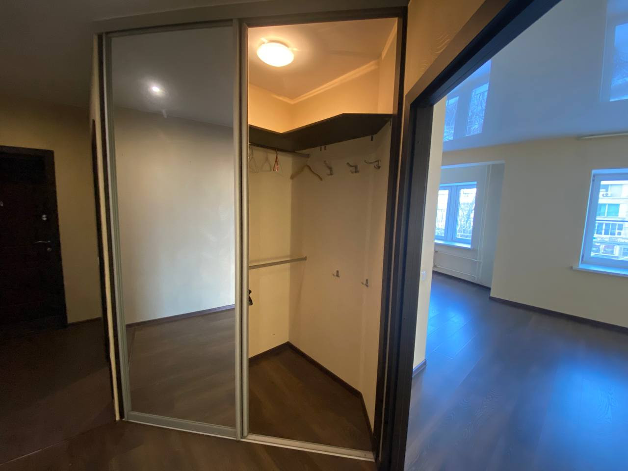 Квapтиpa нe требует ремонта, новым хозяевам останется отличный кухонный гарнитур с варочной панелью и вытяжкой, два вместительных шкафа-купе.