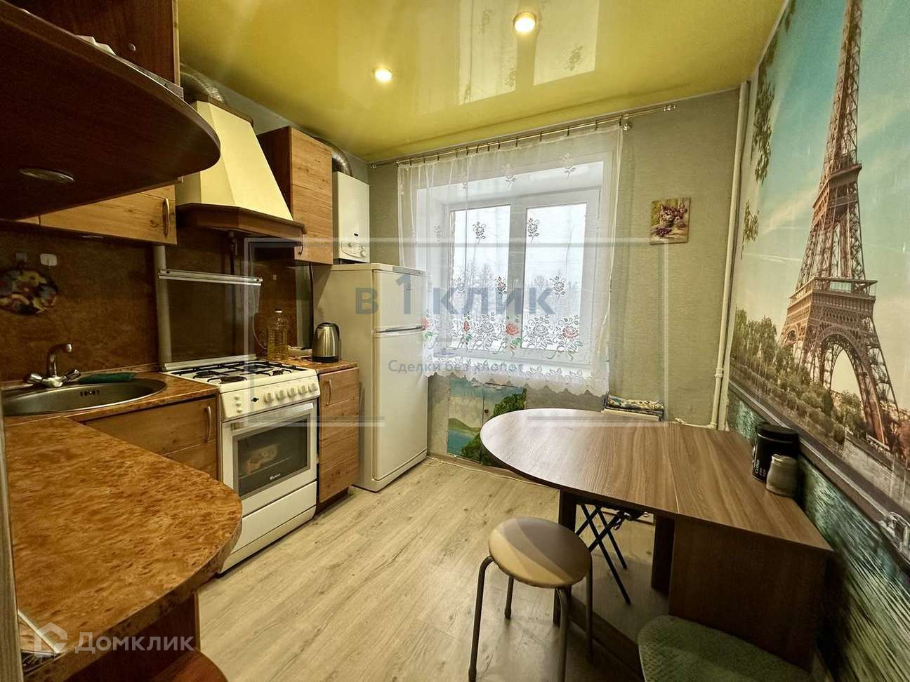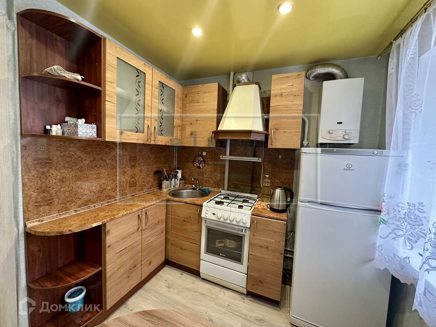 Новому собственнику остается все , что на фото ( кухонный гарнитур , кровать , холодильник, стиральная машина ).