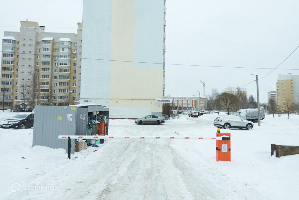 Во дворе большая детская площадка, въезд через шлагбаум.
