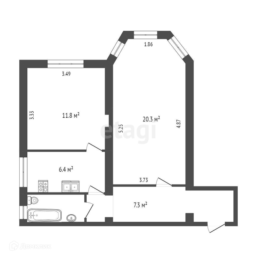 Общая площадь 50.8 м2