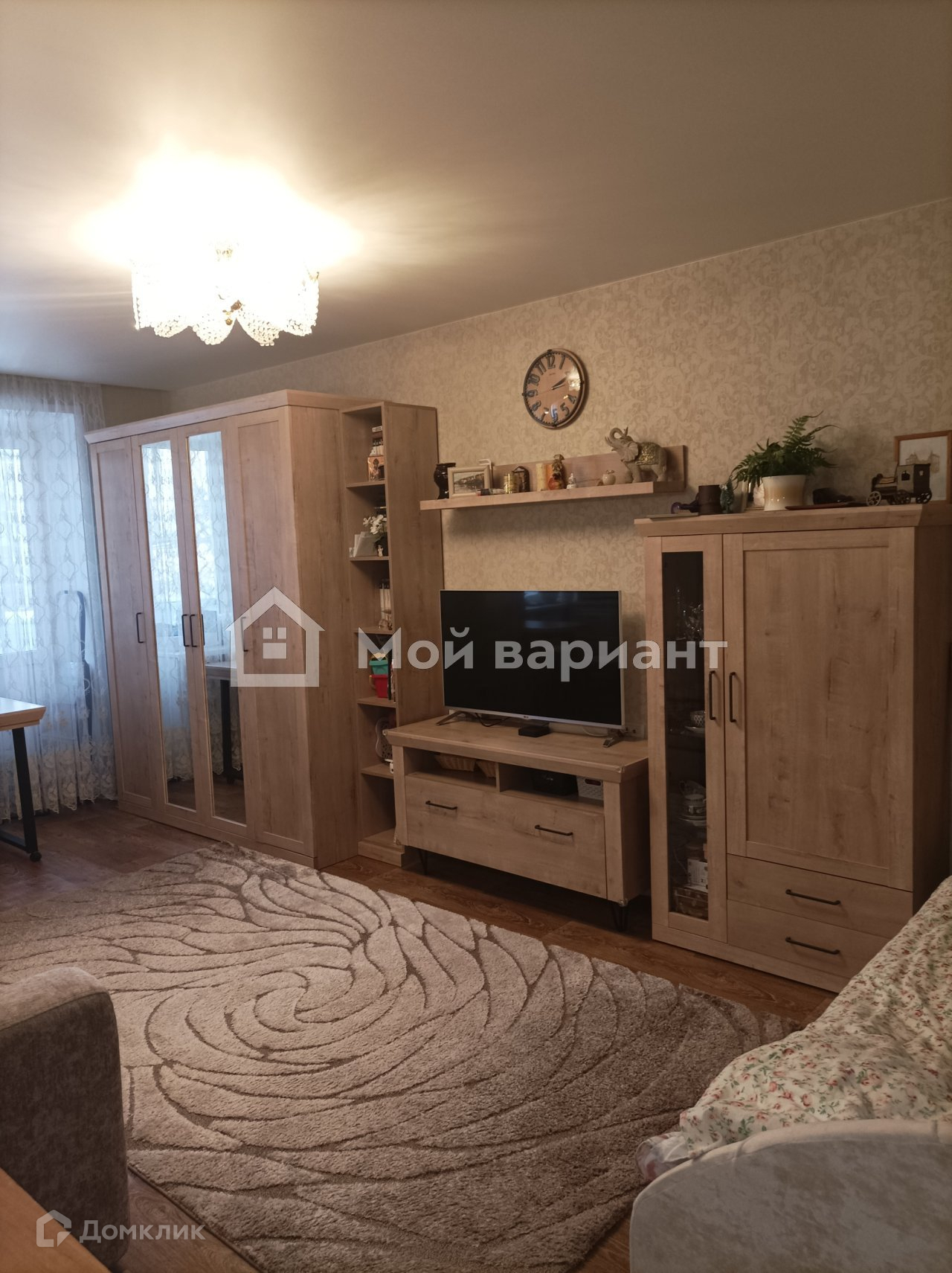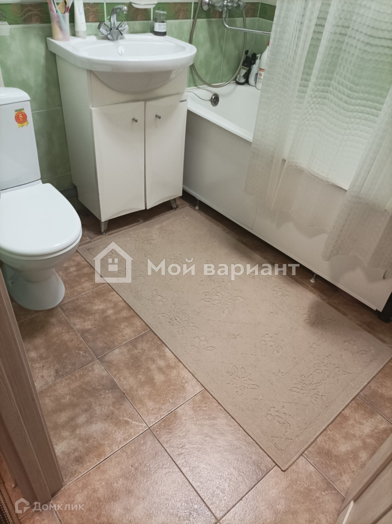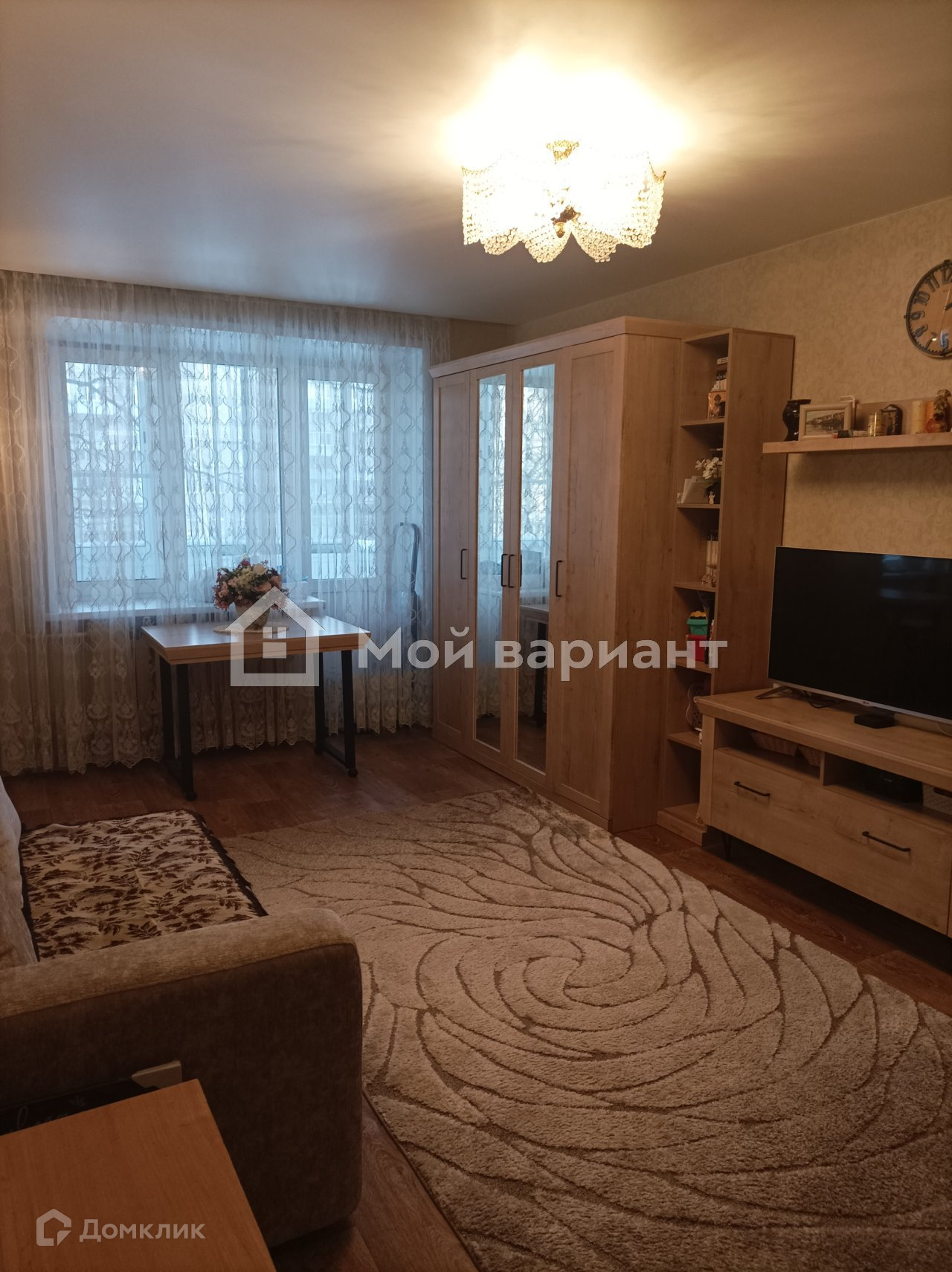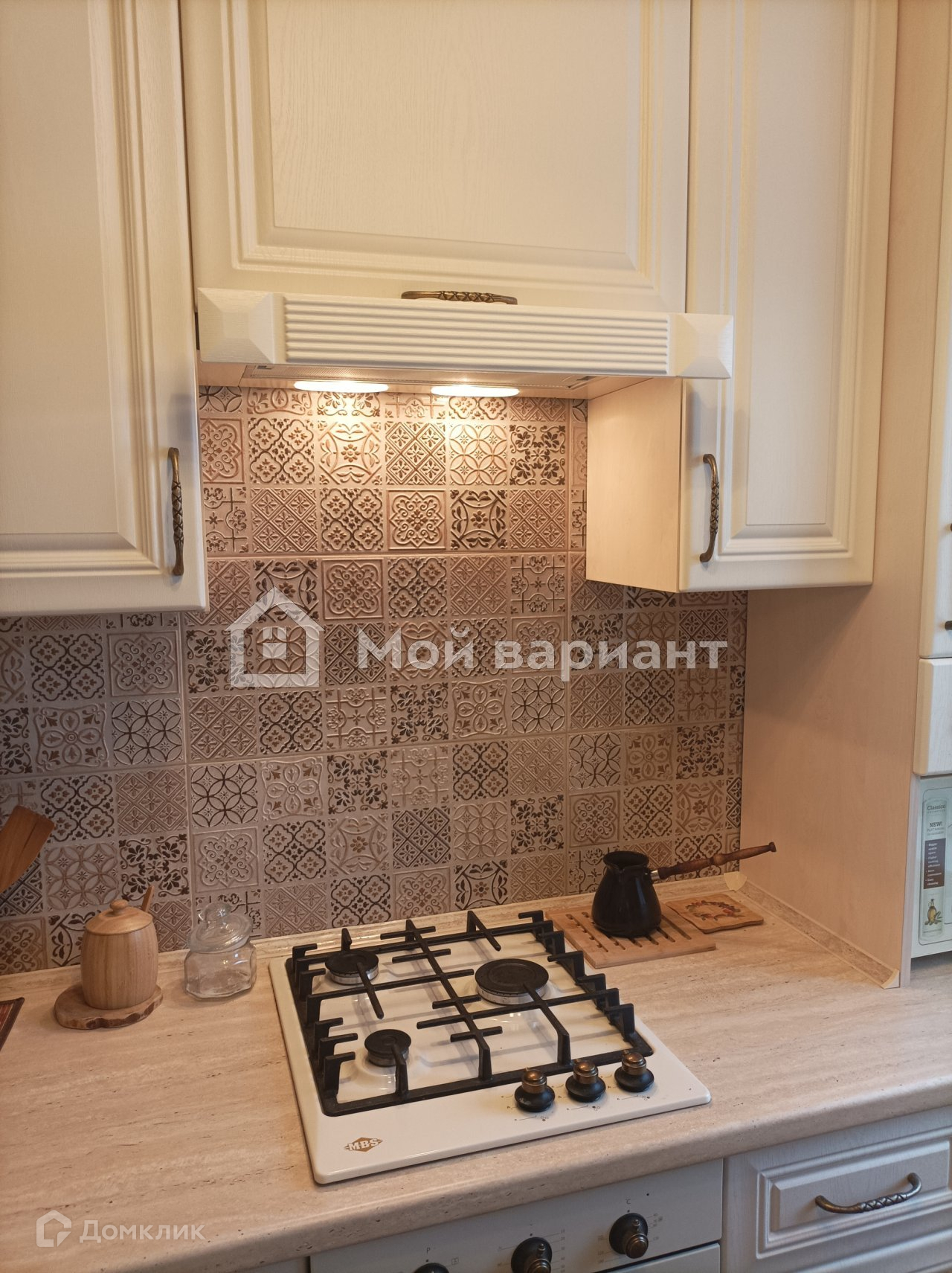 На кухне кафельный фартук, на полу тоже кафель. Мебель и техника не входят в стоимость квартиры.