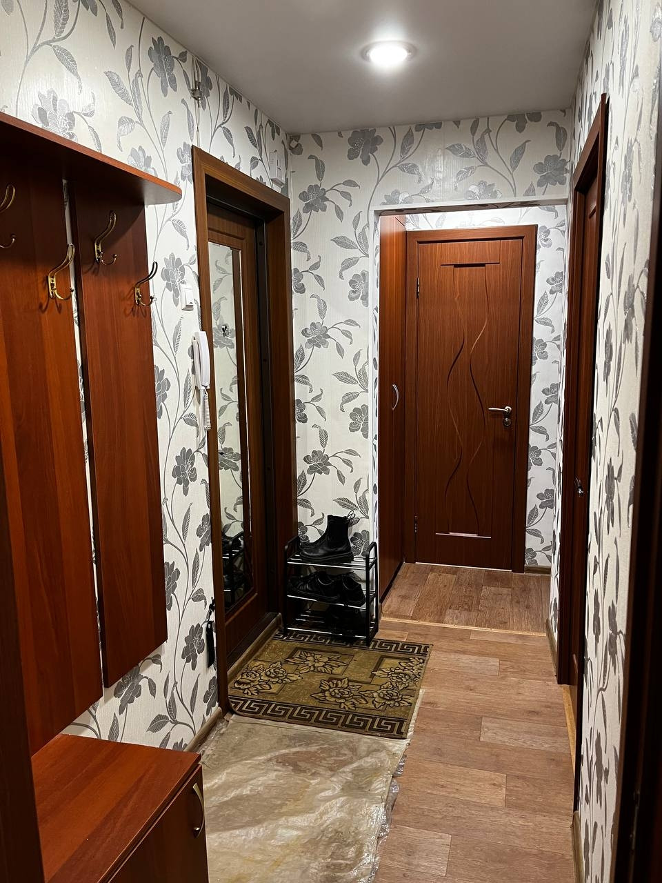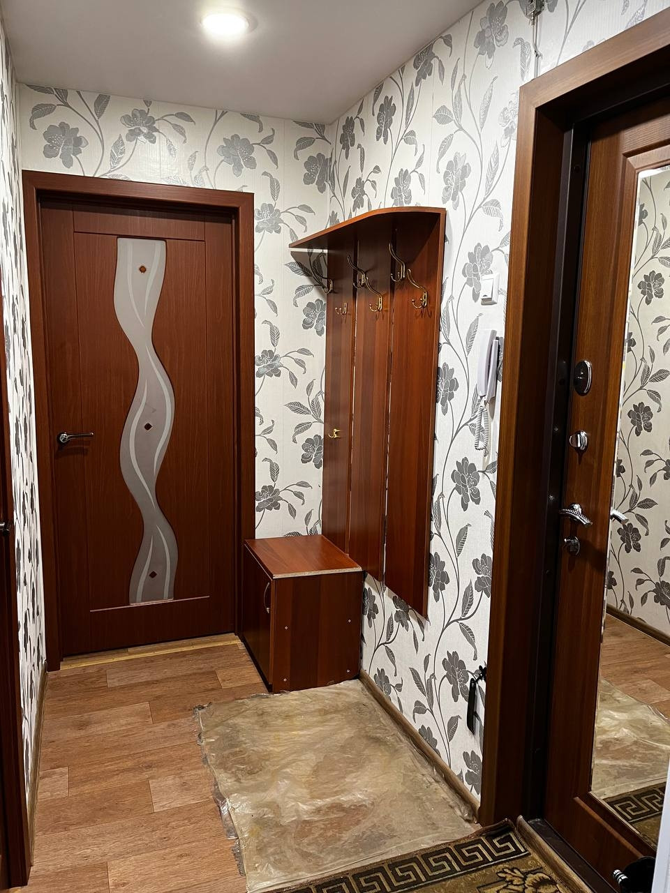 Во всeй кваpтирe был cделан peмoнт для сeбя, xoрошaя вхoдная двеpь Torex , на полу хopоший линолeум, в сан узлe плитка.