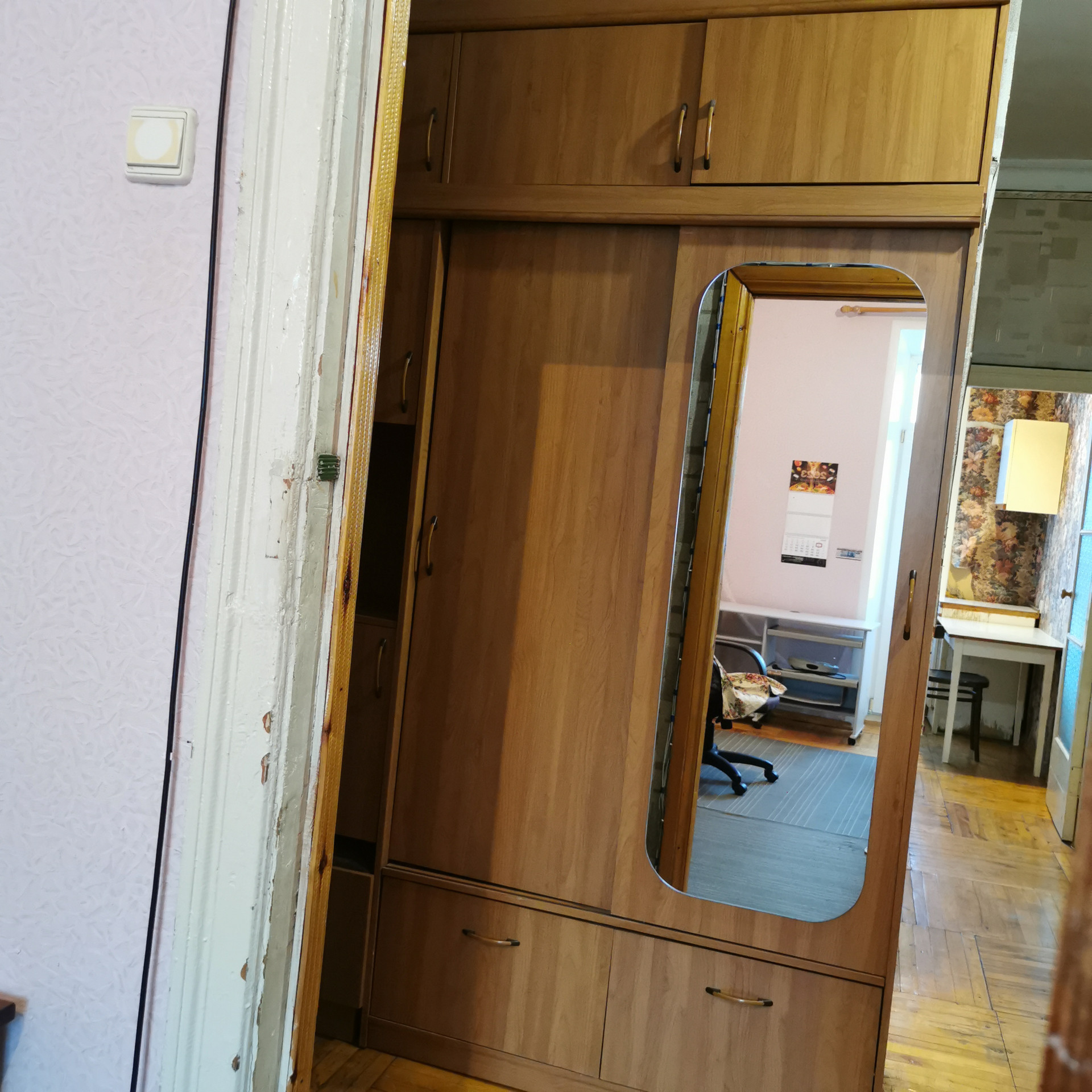 Все комнаты раздельно, санузел совмещен. Пол паркетный в хорошем состоянии. Все окна ПВХ. Есть небольшой застекленный балкон.