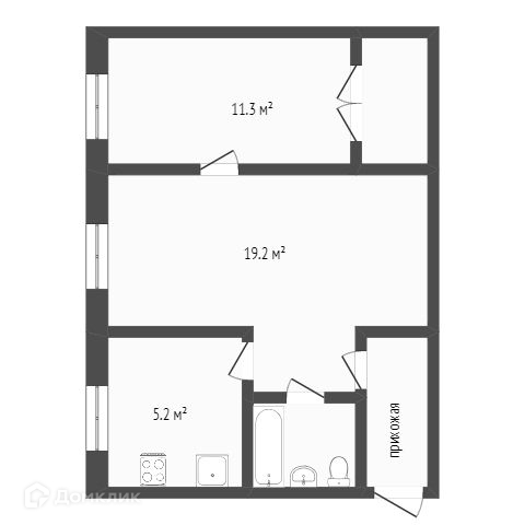 Общая площадь 43.9 м2