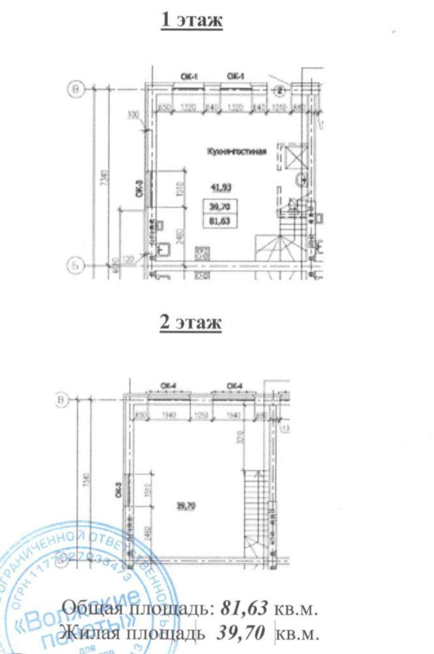 Площадь первого этажа 42 кв.м, площадь второго этажа 40 кв.м. Высокие потолки:  на втором этаже от 2.7 до 4.7м, на первом этаже 2.65м. Благодаря высоким потолкам на втором этаже есть возможность сделать мансардный третий этаж, что добавит к площади таунхауса 15-20 кв. м.