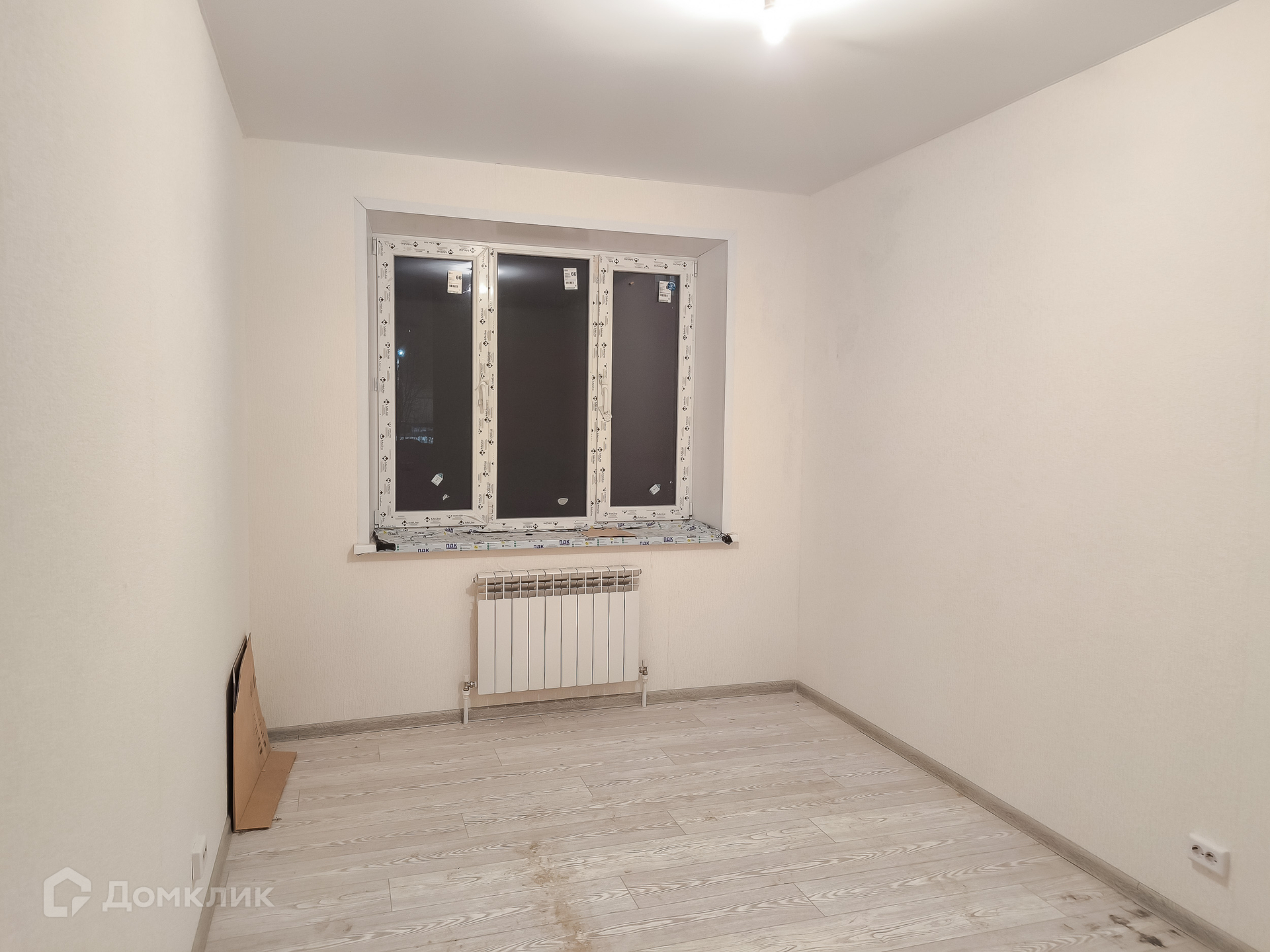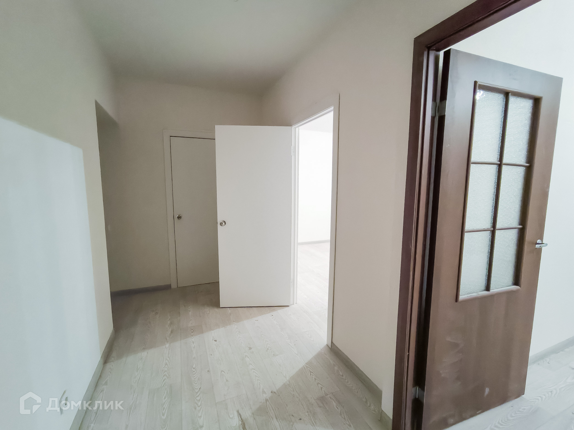 Квартира с бюджетным ремонтом: натяжные потолки, обои, линолеум, межкомнатные двери.