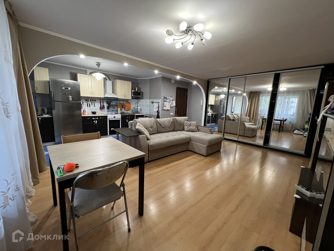 Сделана перепланировка- совмещена кухня с гостинной(узаконена) Отличное место для сбора всей семьй и друзей.