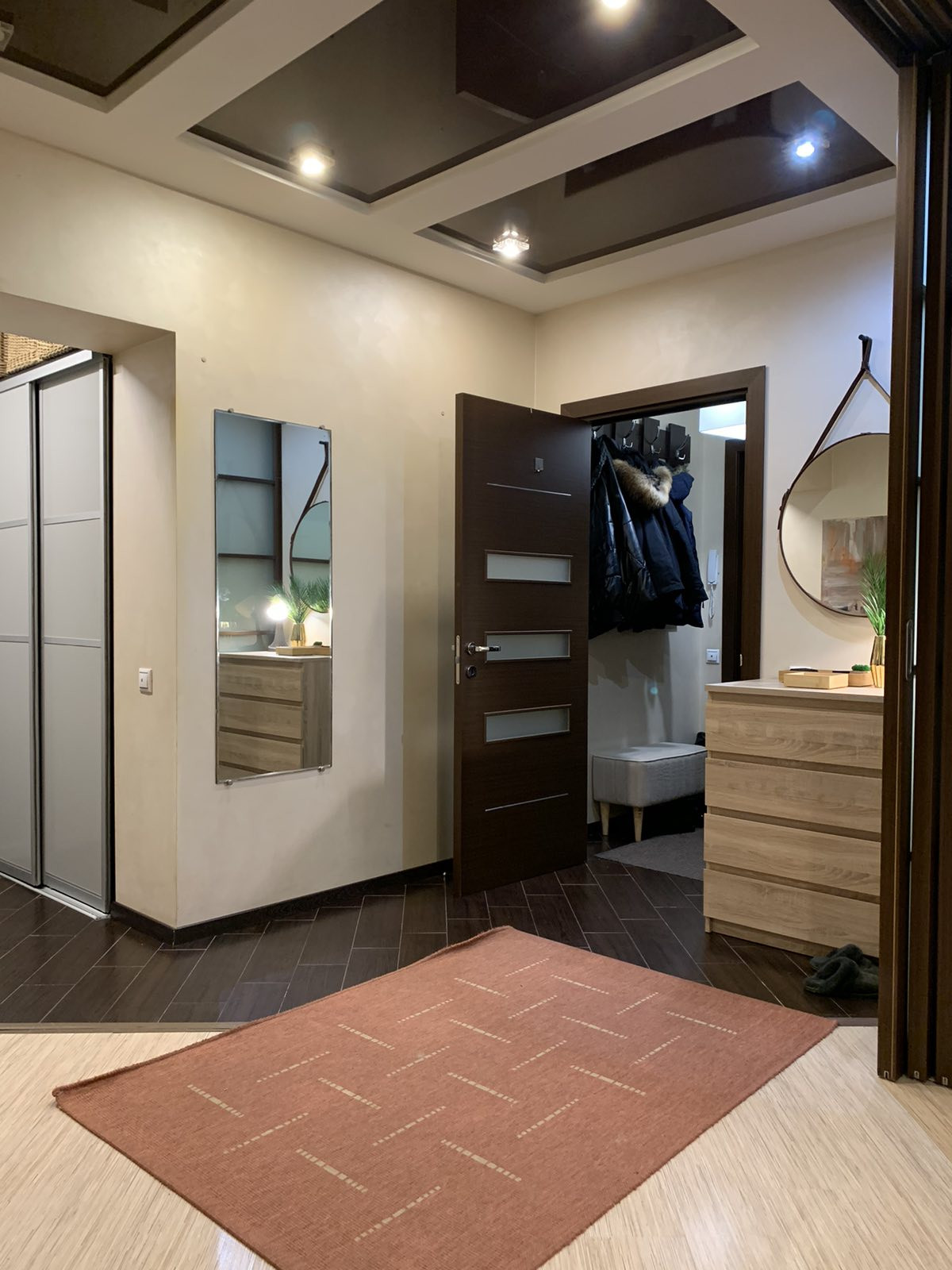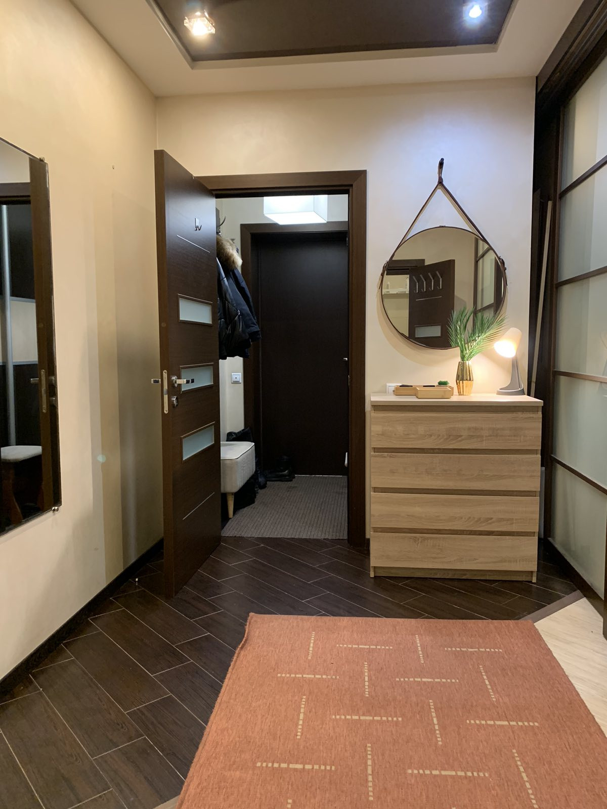 - встроенные шкафы и кладовое помещение позволит легко поддерживать чистоту и порядок