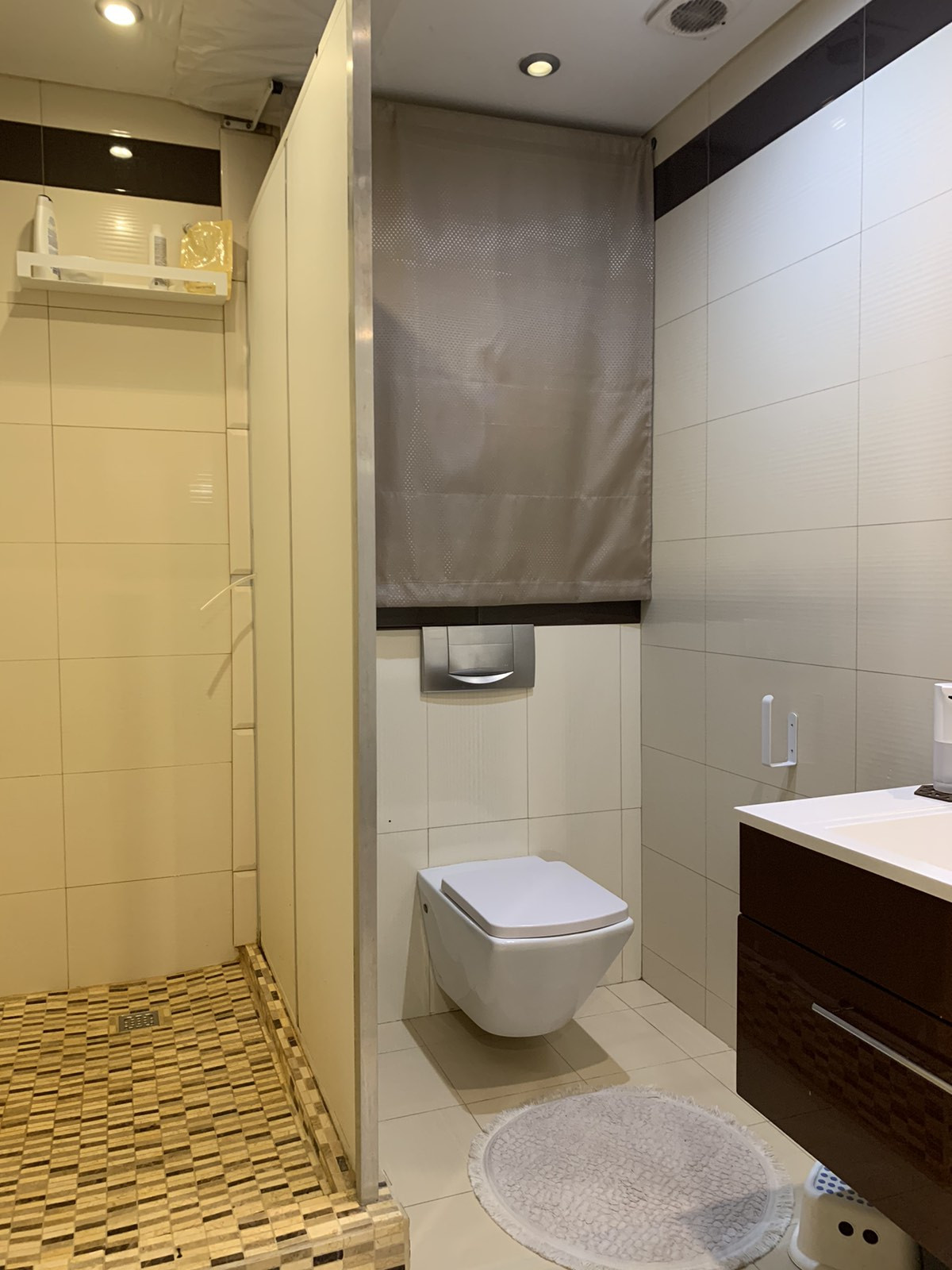 - санузел: сантехника, облицовка стен и пола плиткой, совмещенный