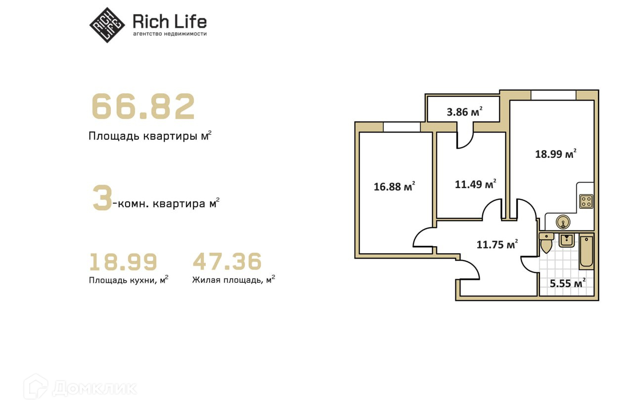 Общая площадь 67 м2