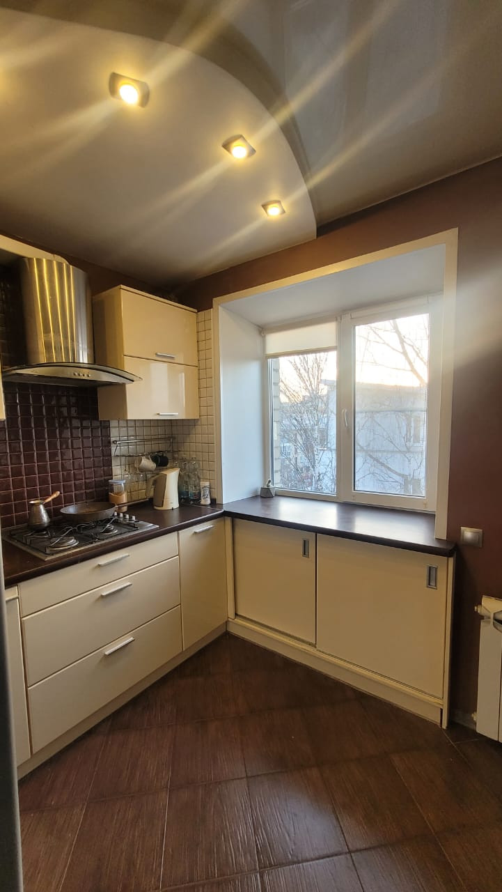 На полу в квартире - плитка и ламинат, потолки натяжные. Кухня позволяет комфортно расположить все необходиомое. Ванная комната в прекрасном состоянии. Установлены счетчики на воду и газ. Современные пластиковые окна выходят во двор, поэтому нет шума от дороги, и ребенок на детской площадке под присмотром родителей. Окна смотрят на запад, то есть летом в квартире не так жарко и светло до заката. В подъезде установлены современное остекление. Подъезд чистый, без посторонних запахов, потому что соседями являются культурные люди.