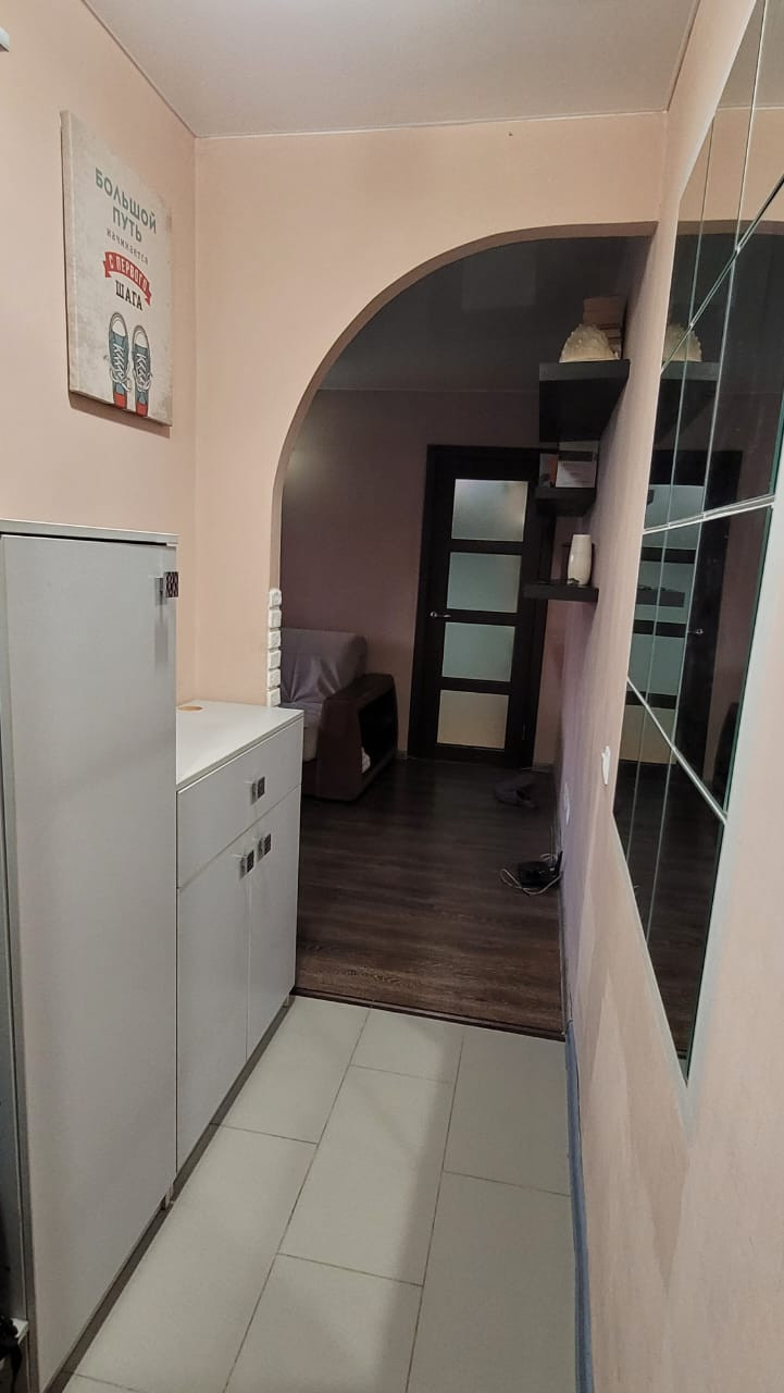 В прихожей удачно расположена стенка, на которую можно повесить верхнюю одежду; на полу - красивая плитка, что очень практично в прихожей. Также в прихожей находится щиток (во время ремонта проводка была заменена на современную).