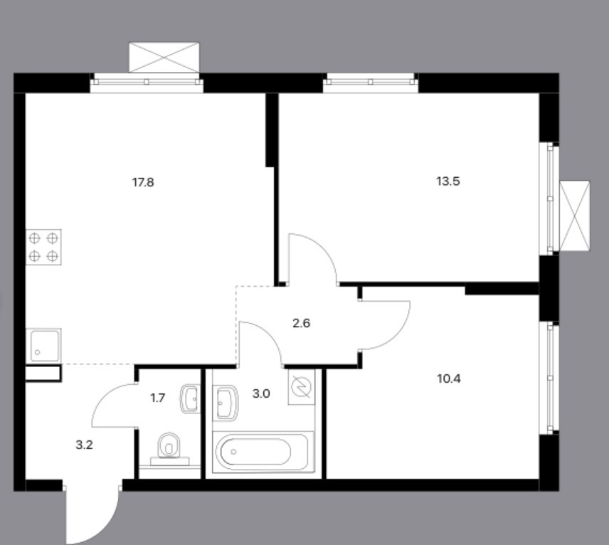 Общая площадь 52.2 м2