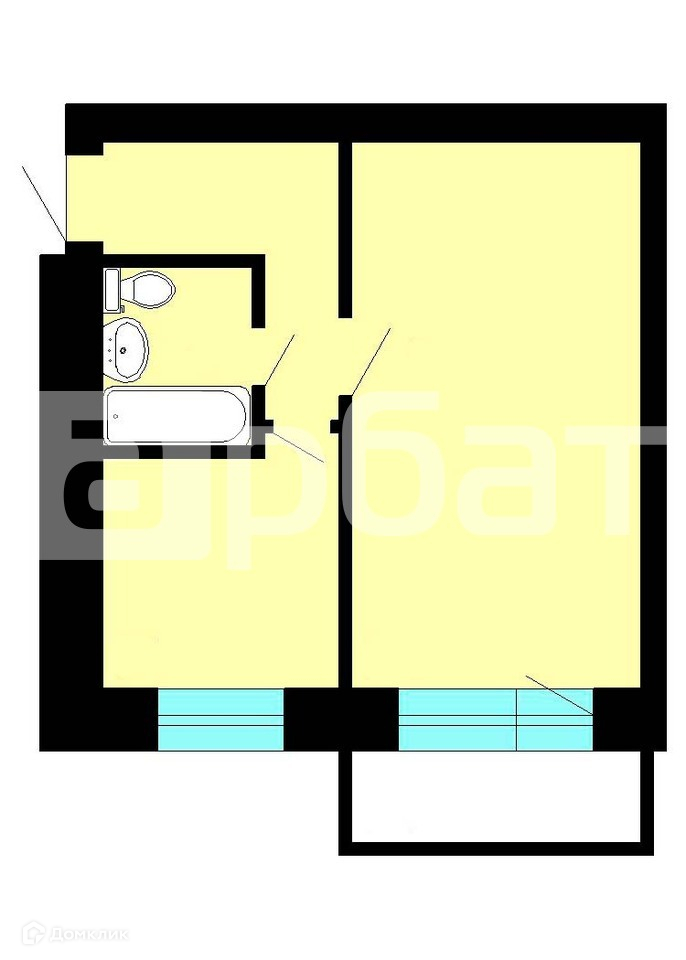 Общая площадь 34.5 м2