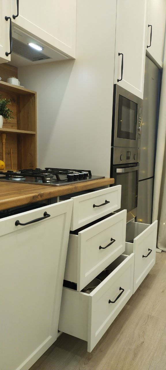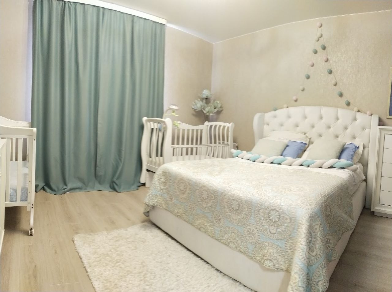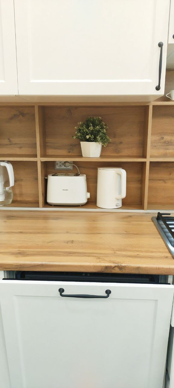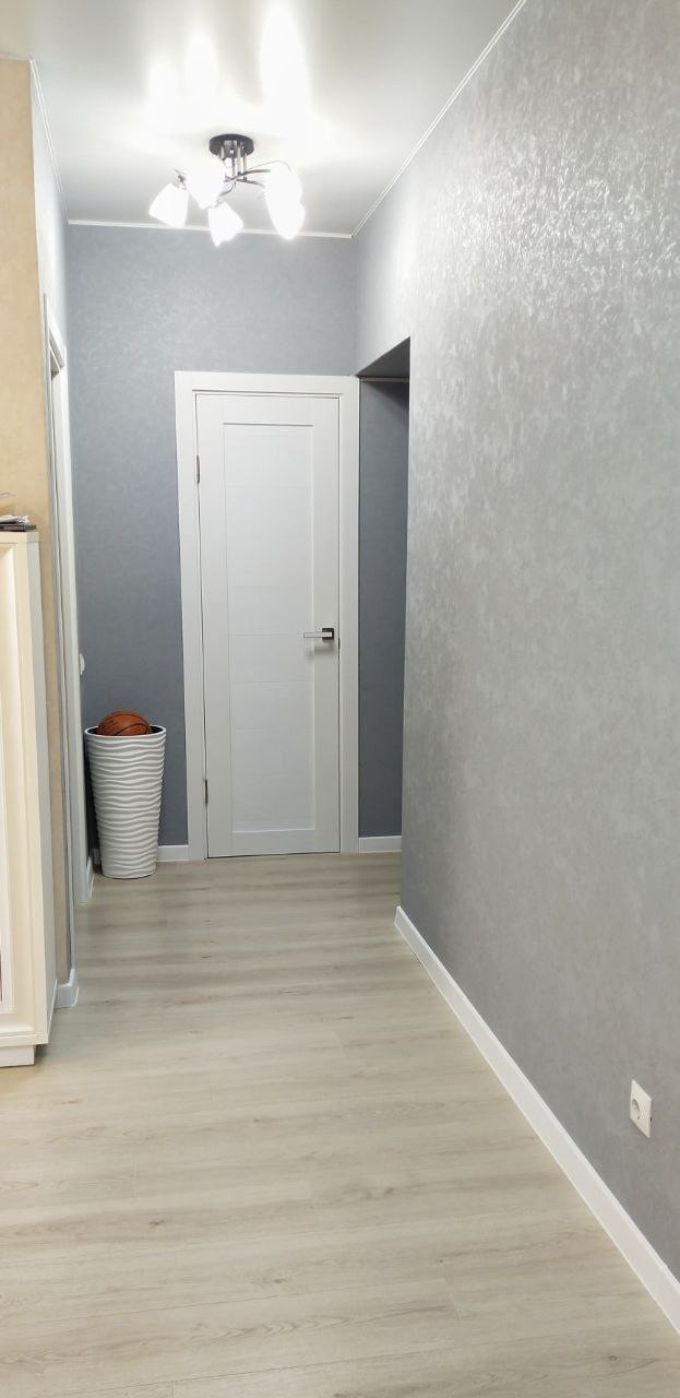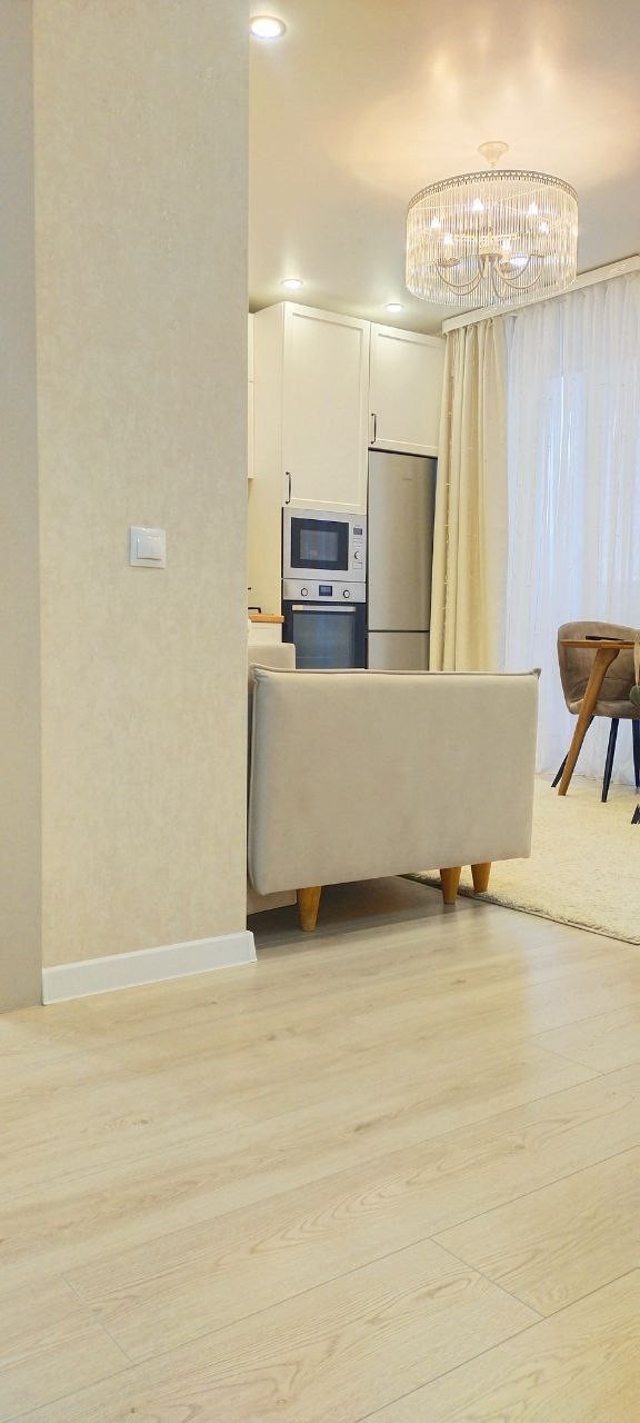 * натяжные потолки, кафель в ванной, ламинат на полах, качественные обои, кухонный гарнитур и встройка, большая посудомойка
