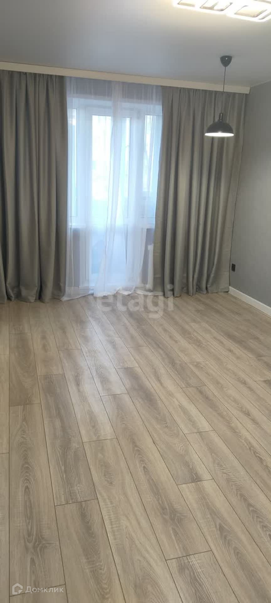 В гостиной сделан ремонт, световые точки выведены под удобное зонирование. Так же в гостиной выход на балкон. Балкон застеклен.