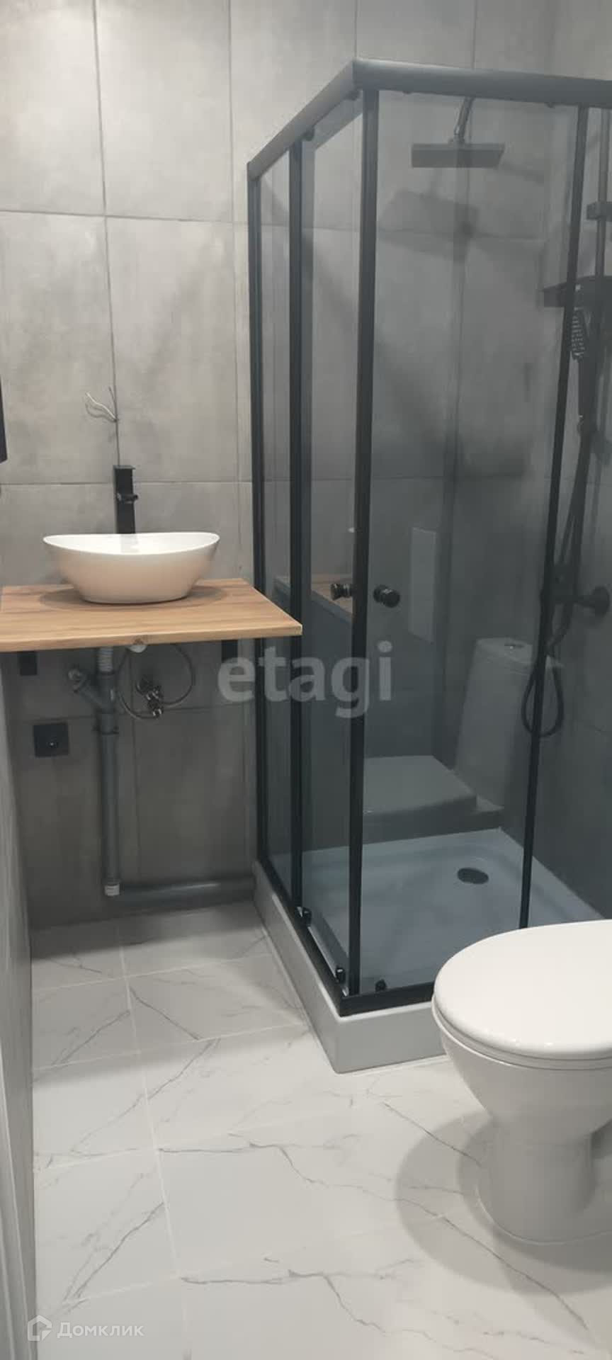 Сан. узел выполнен в современном стиле. Вся сантехника новая. Продумано место под стиральную машину.