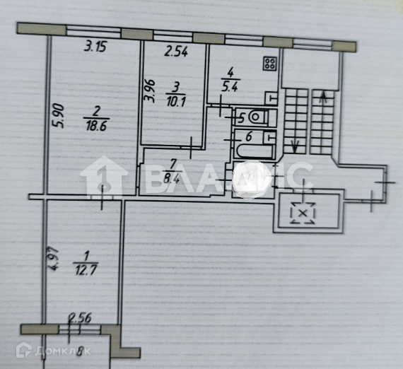 - 3-комнатная квартира площадью 58 кв. м.