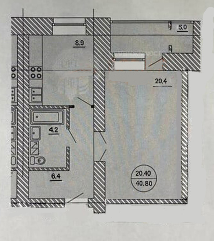Общая площадь 40.8 м2