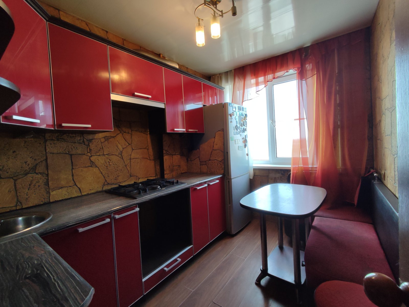 Состояние квартиры удовлетворительное. Остается встроенный шкаф-купе и кухонный гарнитур.