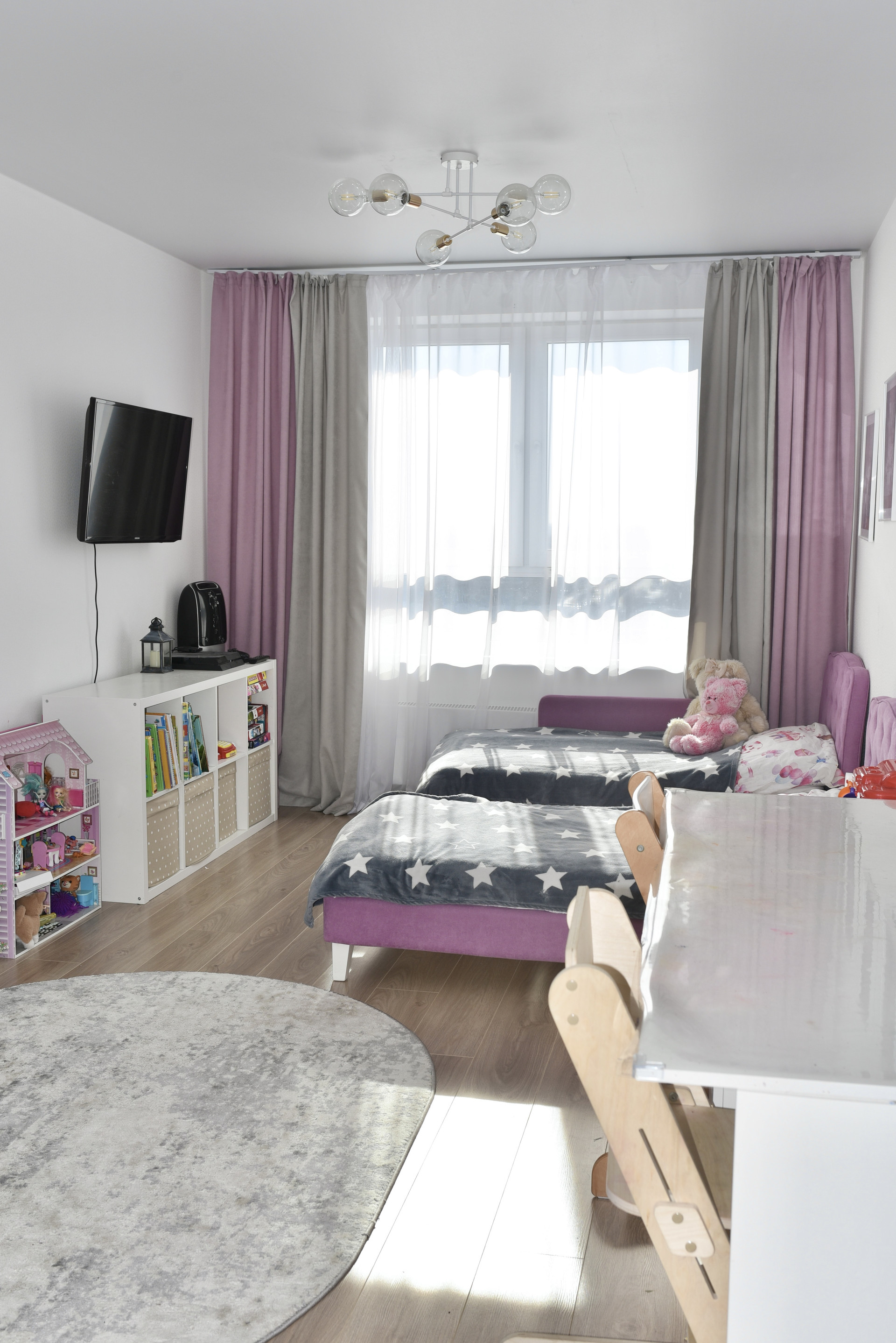 Общая площадь 86 кв.м., кухня-гостиная 47 кв.м., комнаты 19 кв.м. и 13 кв.м. Два сан. узла, в плитке, в кухне-гостиной и коридоре заменен ламинат и натяжные потолки на более качественные. Из окон открывается отличный вид на город, застекленный балкон с выходом из кухни. Квартира светлая, очень теплая. Новым владельцам остается современная мебель, кухонный гарнитур с дорогой встроенной техникой.