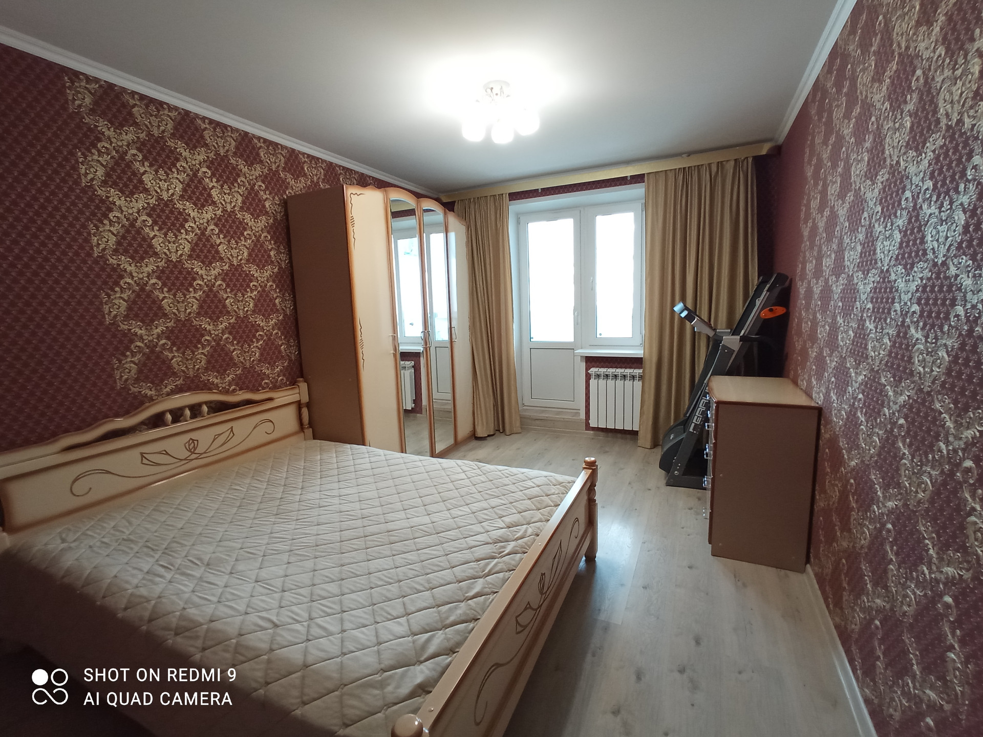 в спальне - спальный гарнитур (2-х спальная кровать, комод, шкаф)