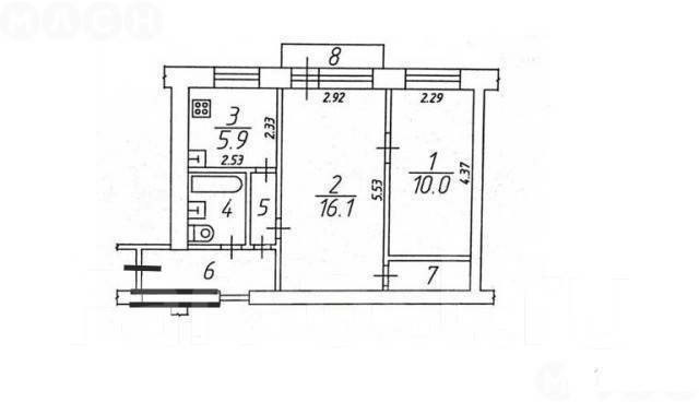Общая площадь 42.2 м2