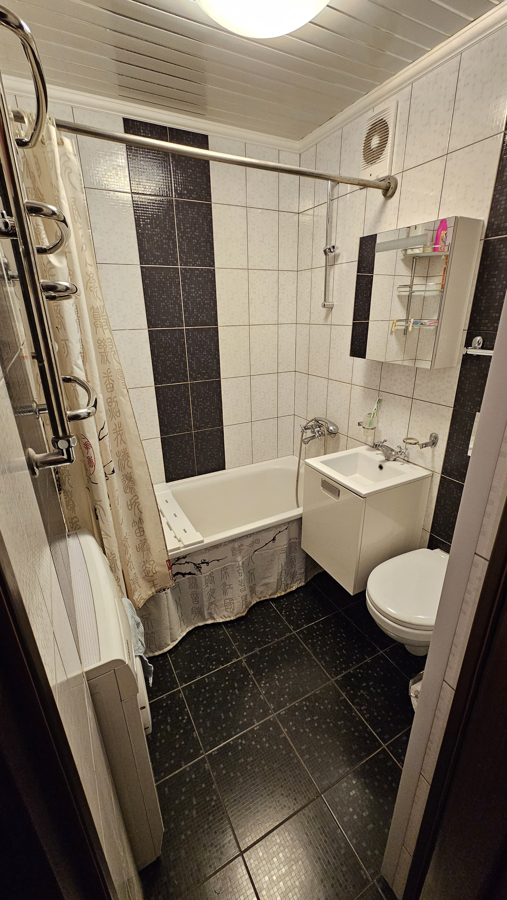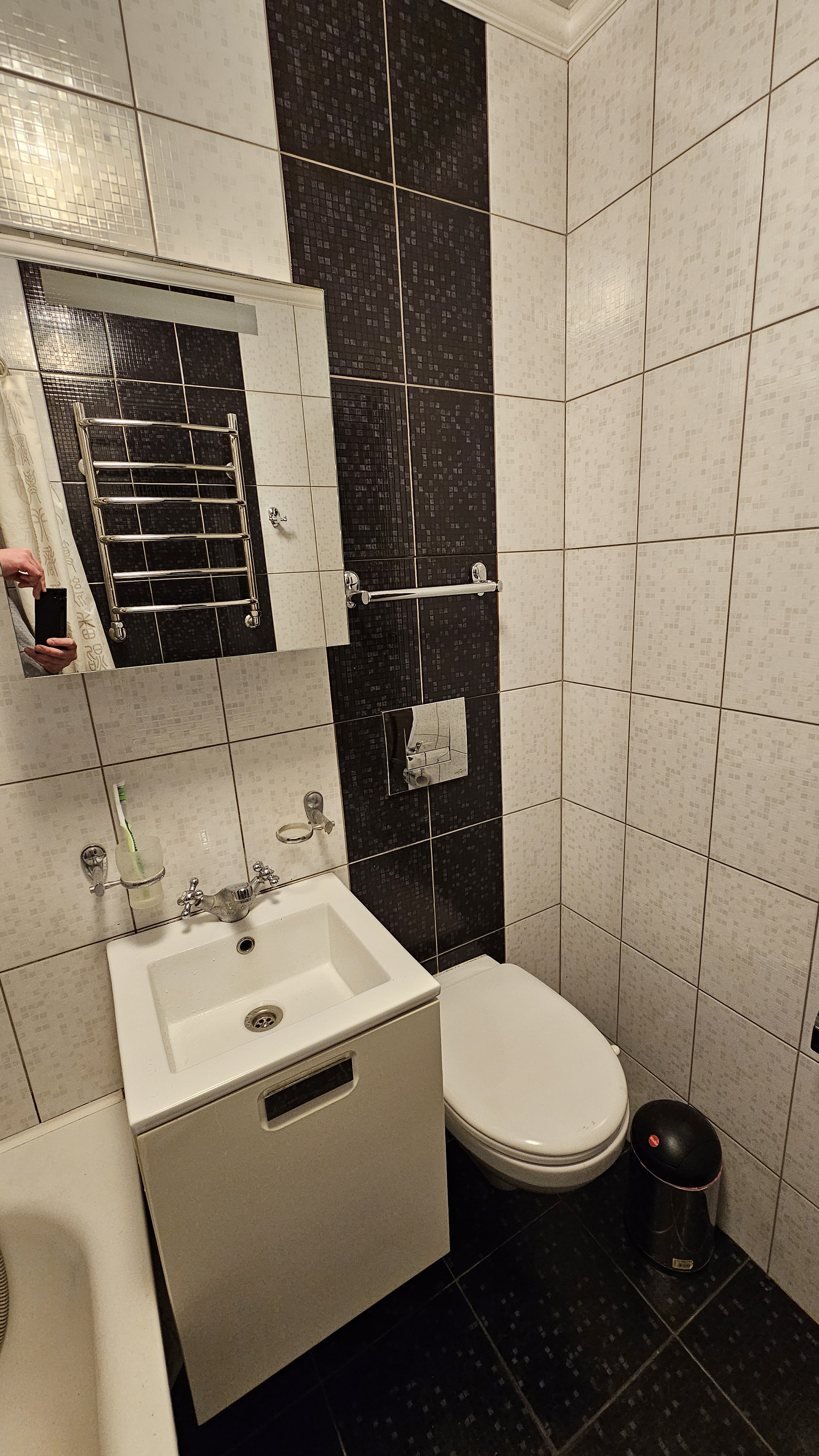 Санузел в плитке, унитаз с инсталляцией, немецкая стальная ванна kaldewei.