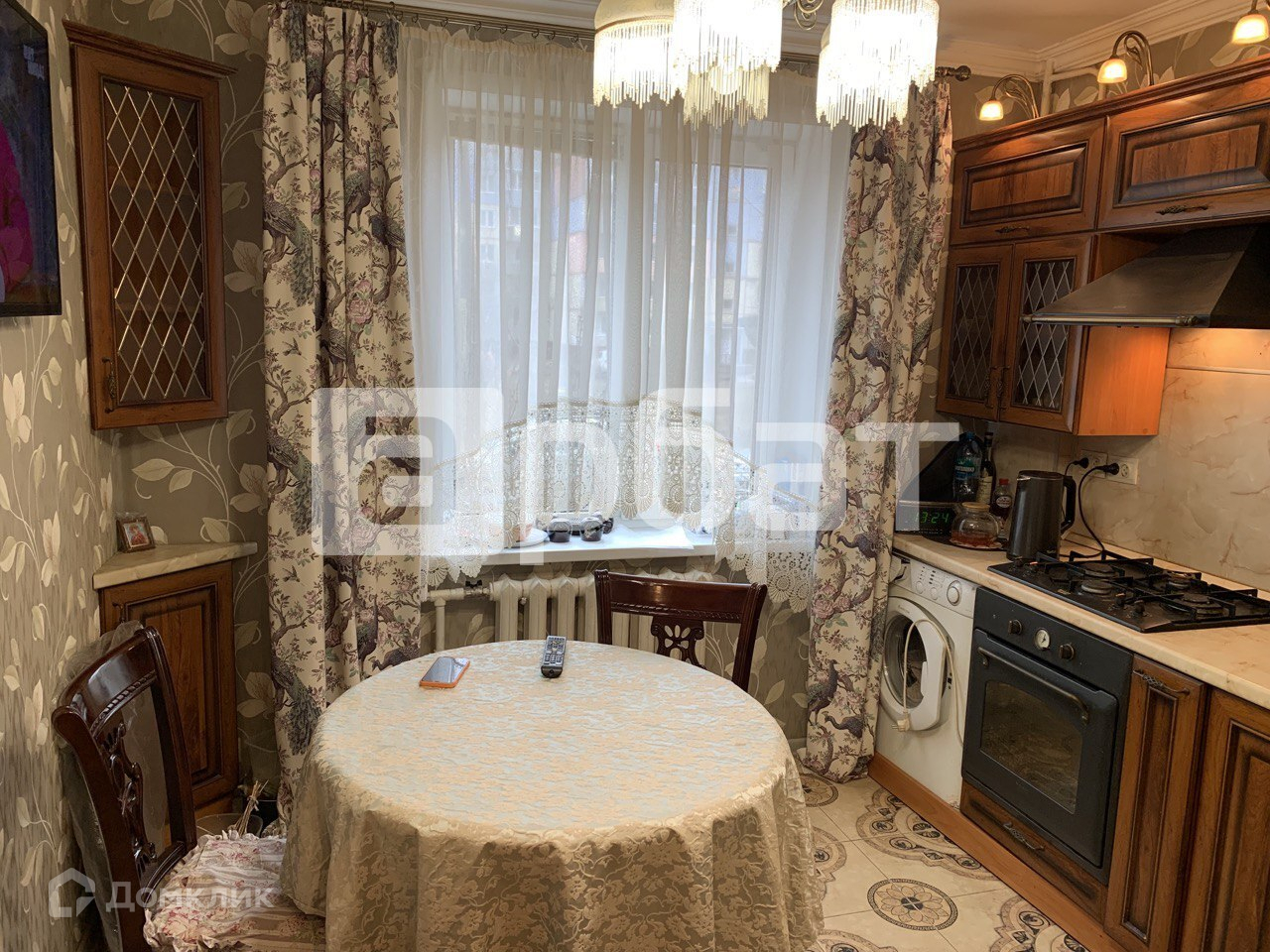 На кухне остается встроенный гарнитур, стиральная машина Аристон, электрический духовой шкаф, варочная газовая панель.