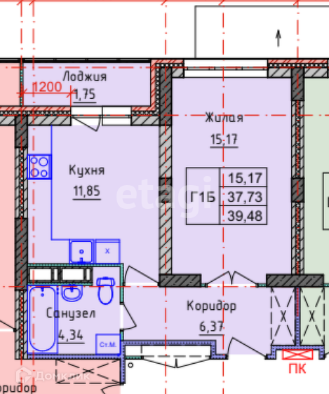 Общая площадь 39.48 м2