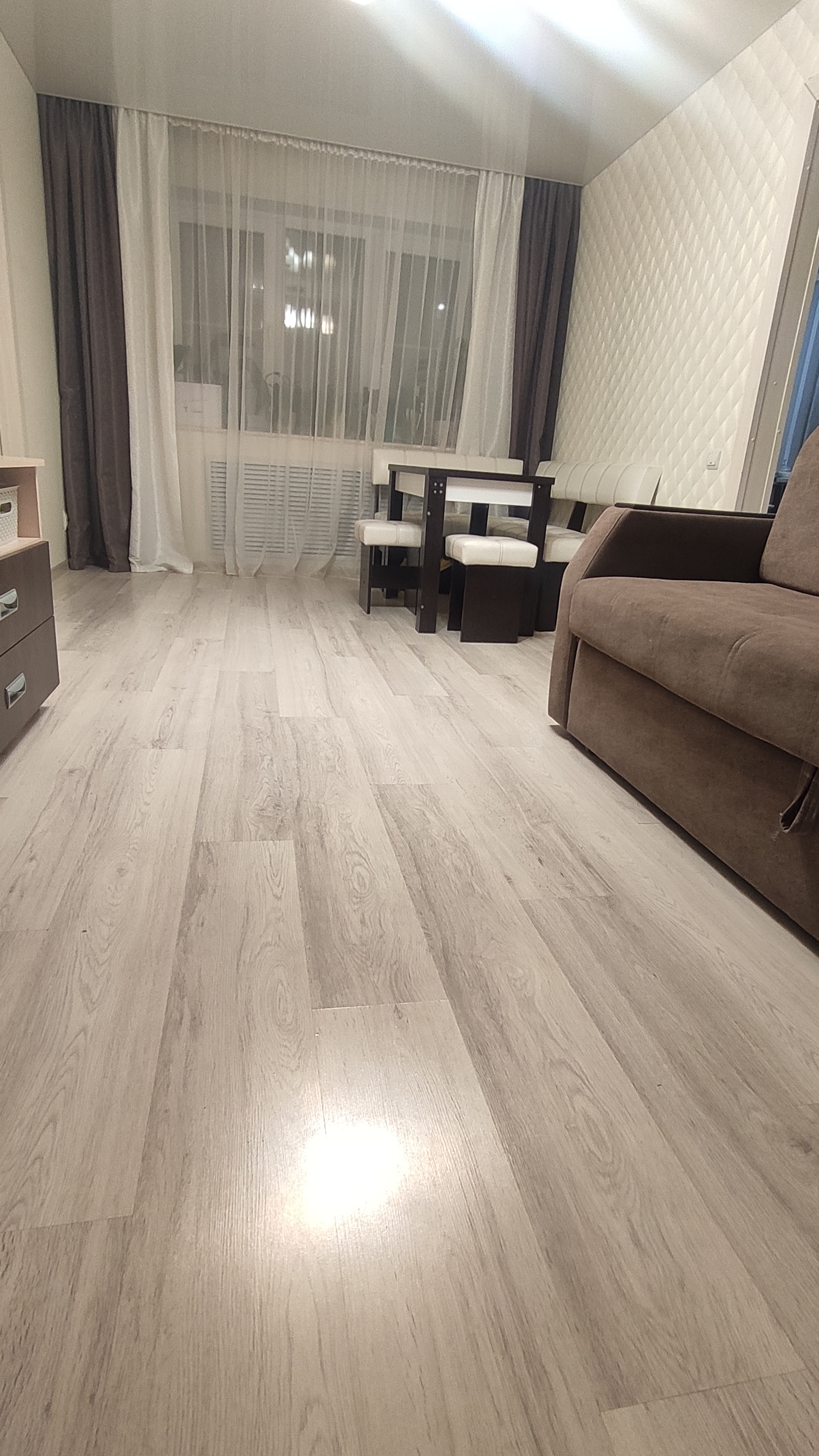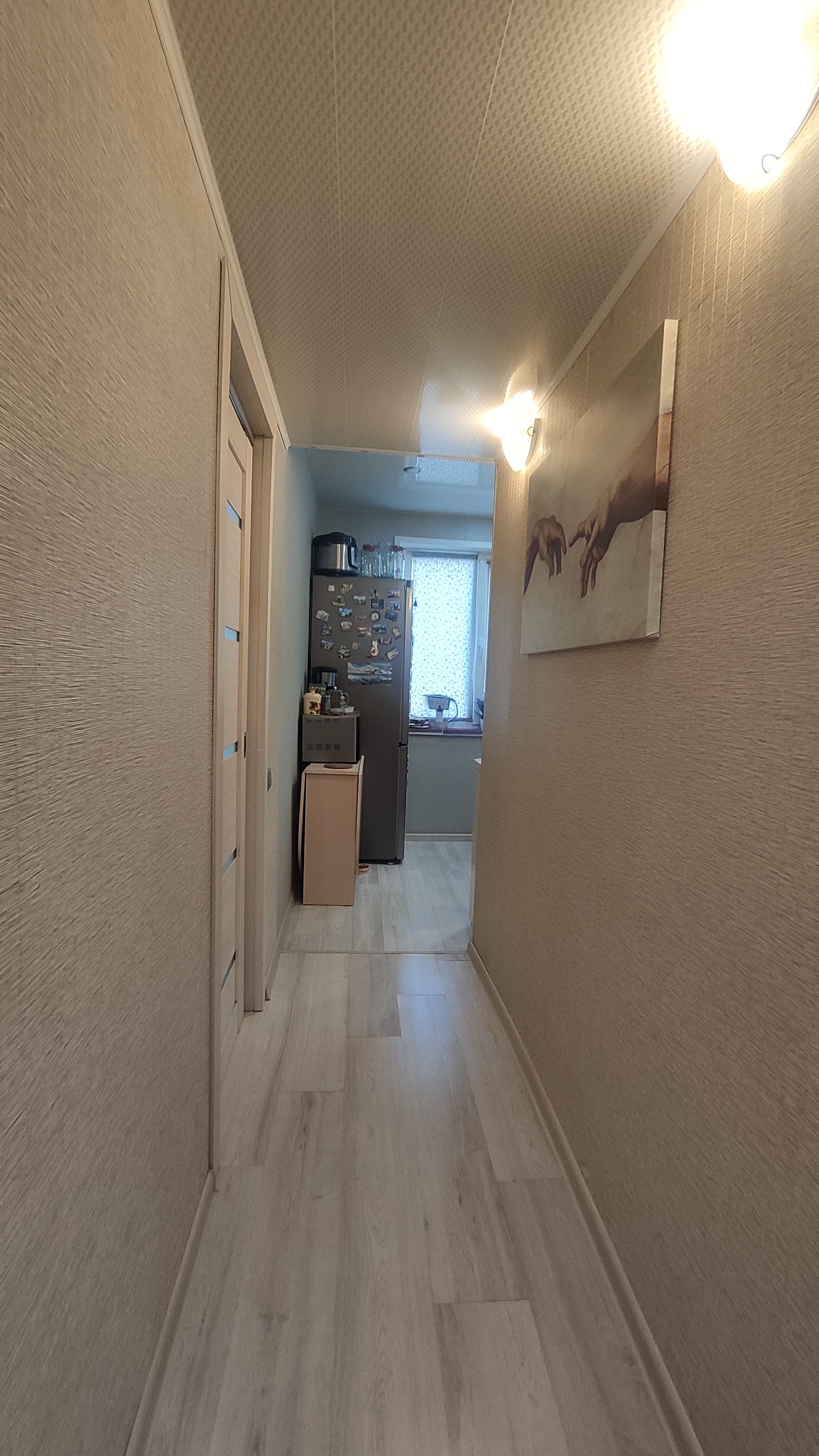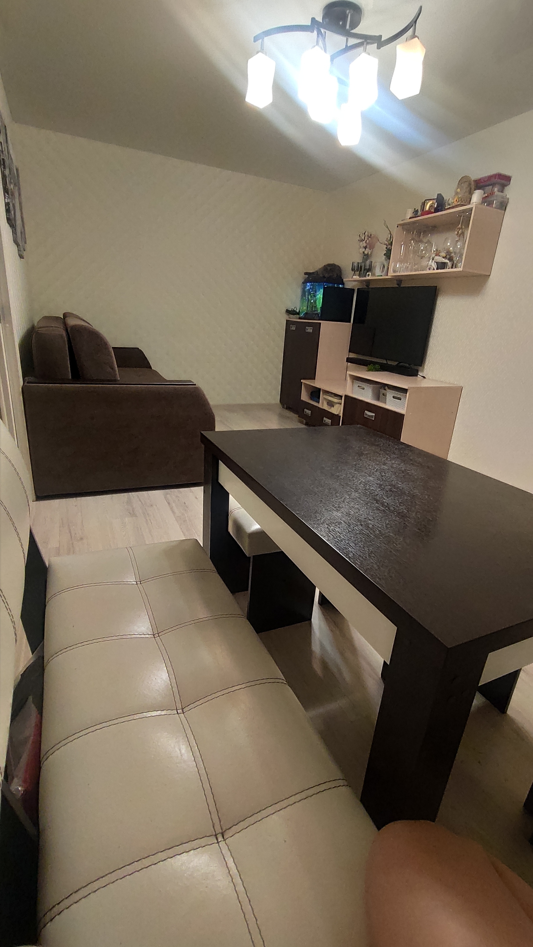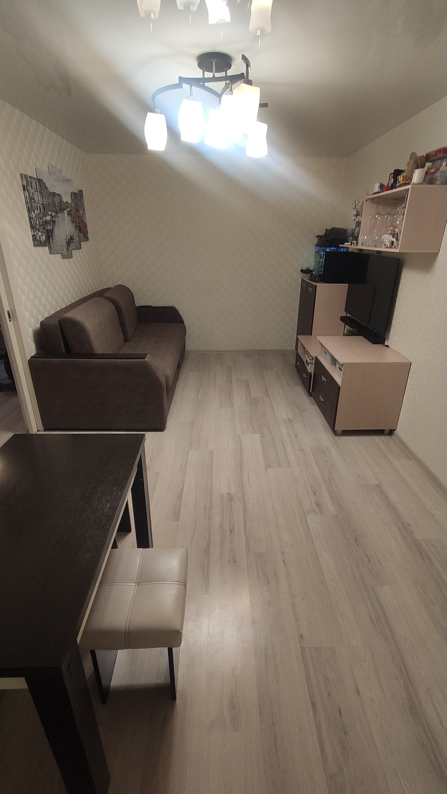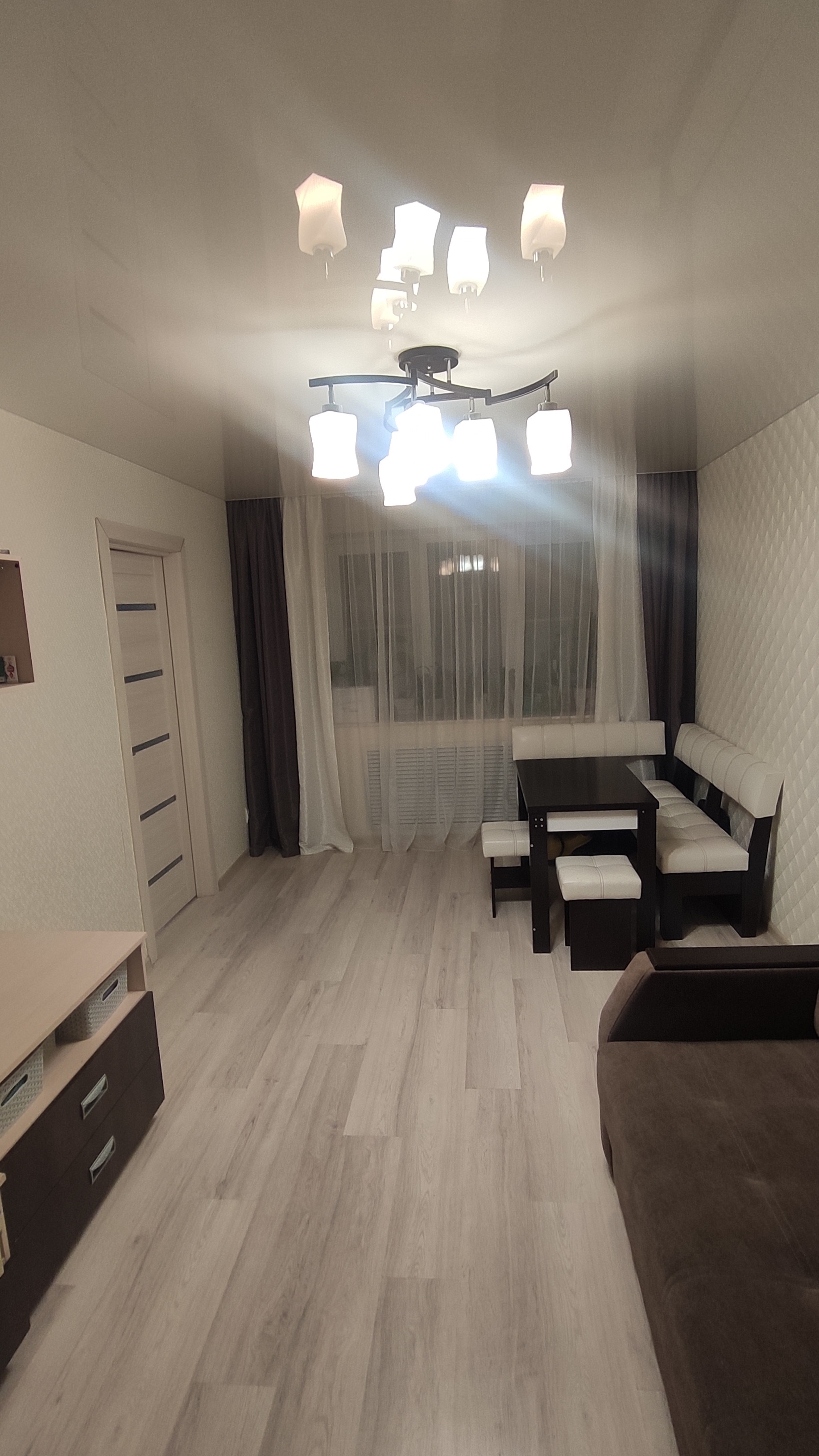 В квартире выполнен современный ремонт (полы выровнены, новые обои, натяжные потолки, хорошие межкомнатные двери, все окна пвх с противовзломной фурнитурой, санузел отделан плиткой,