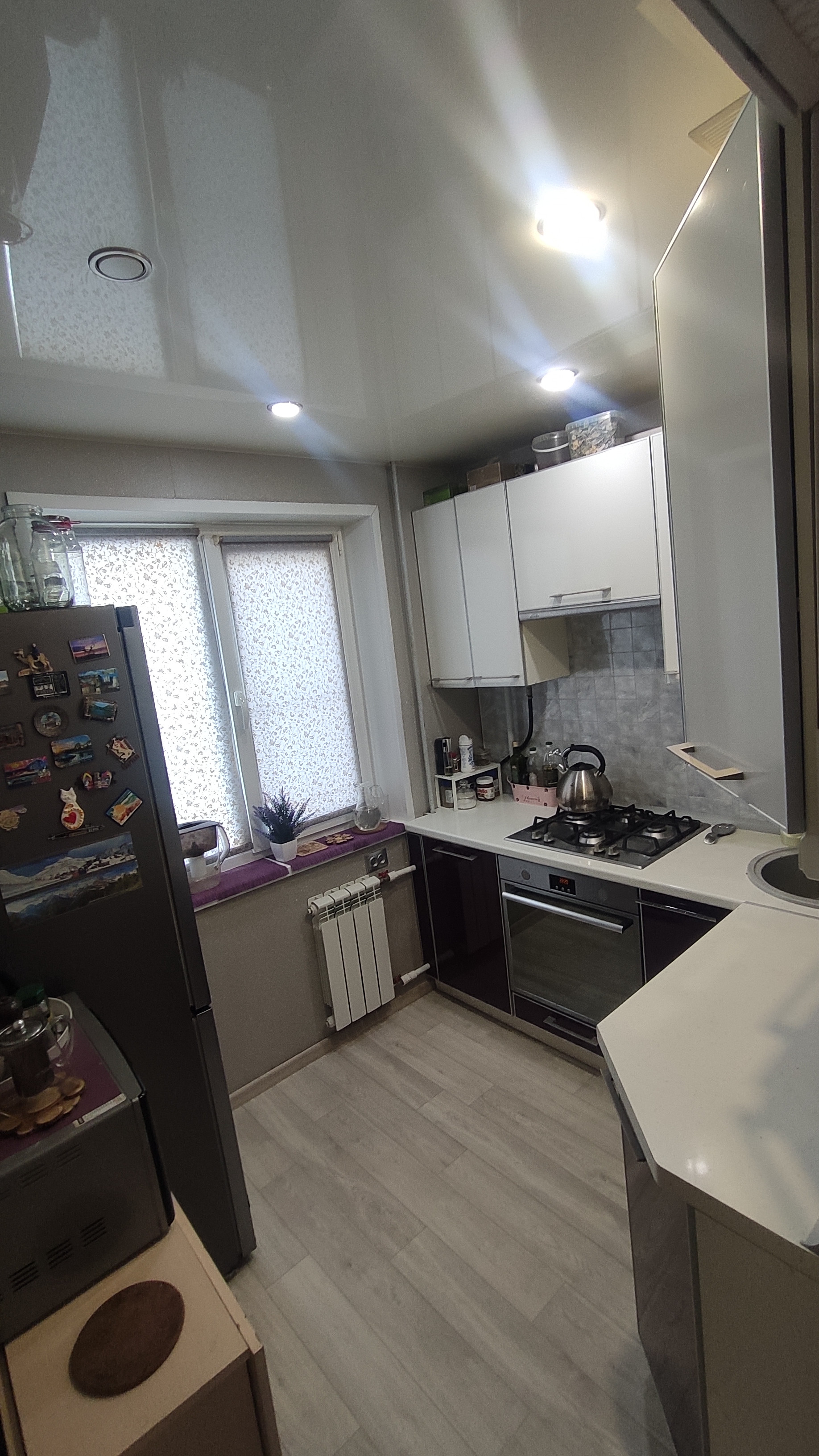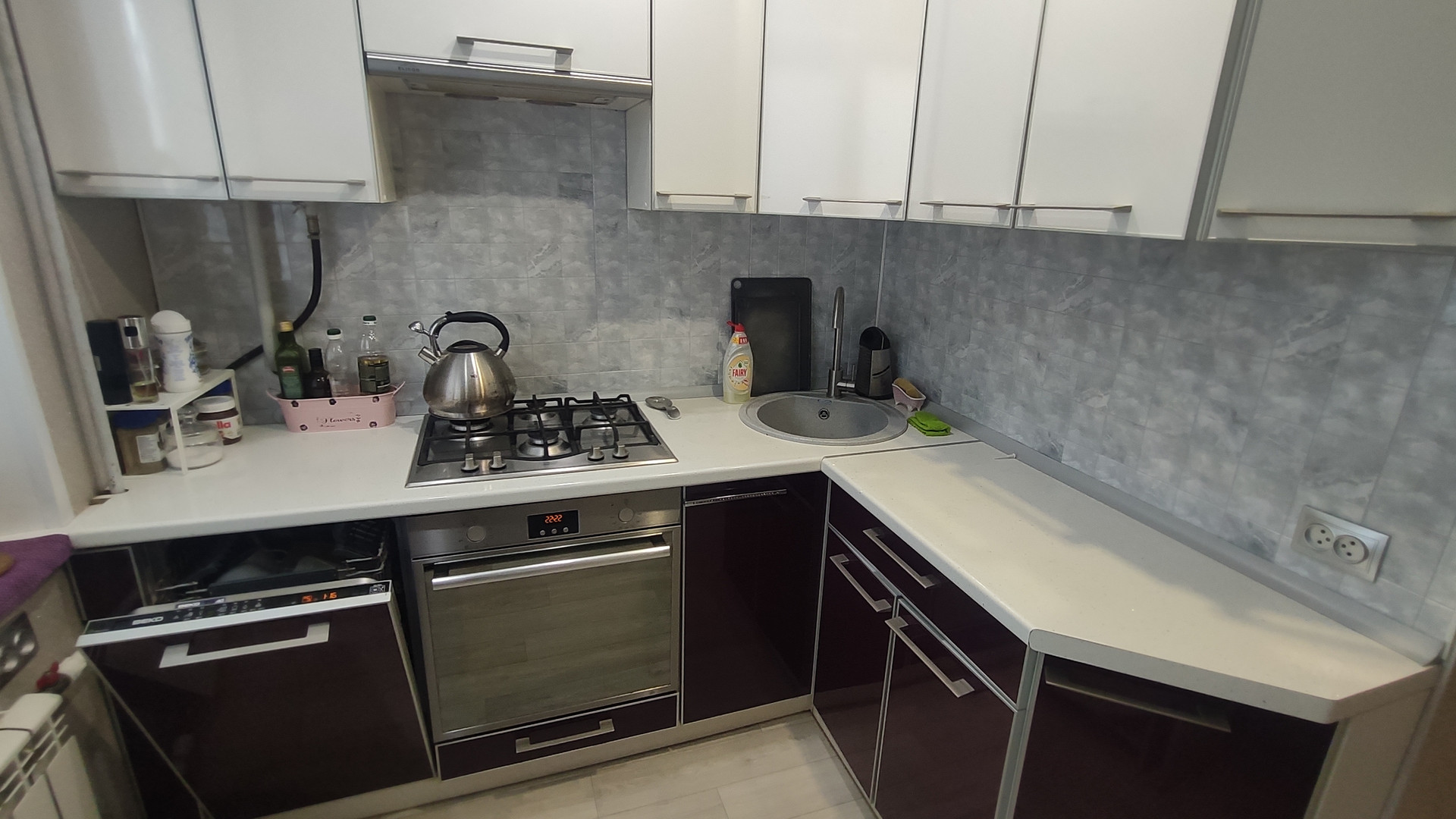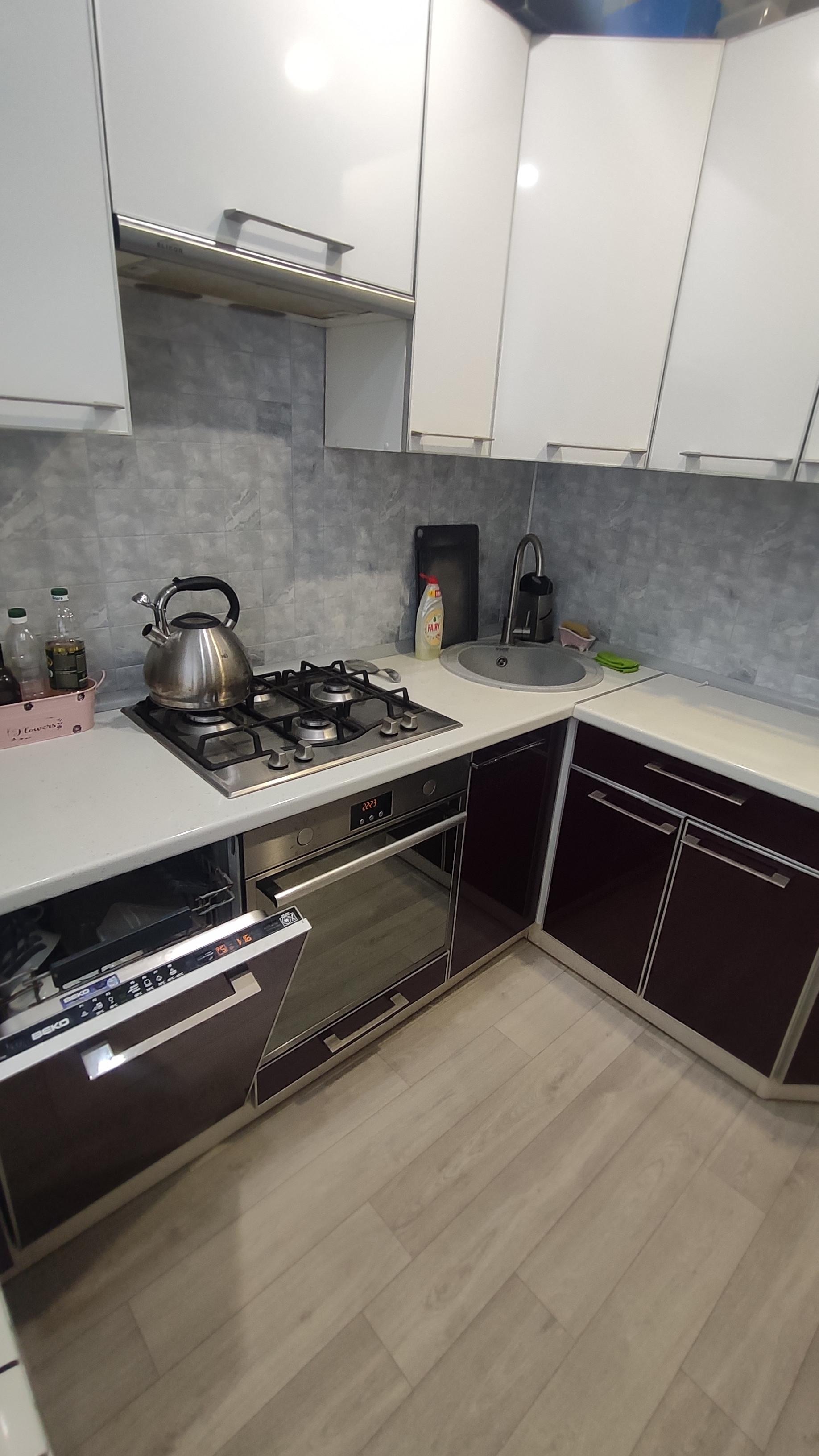 современный кухонный гарнитур с фасадами из пластика остается в подарок, а также остается в подарок посудомоечная машина, без газовой колонки)