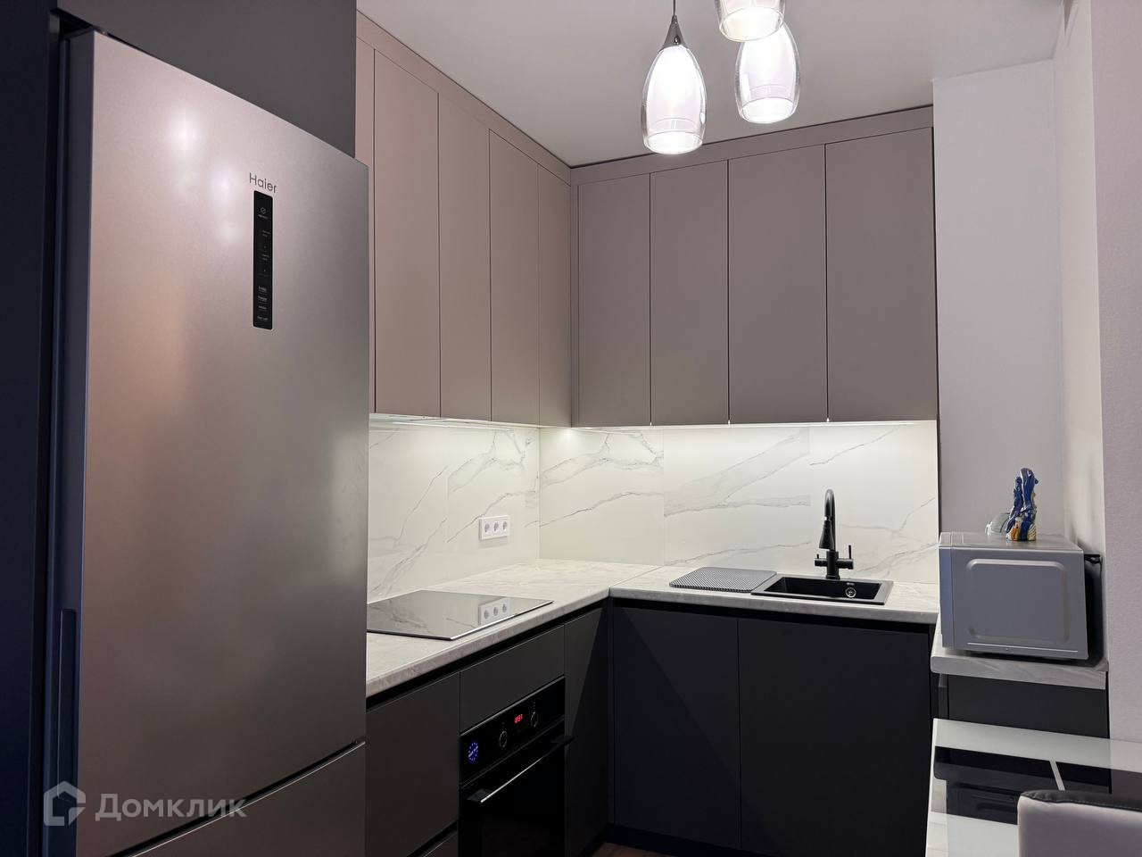 В квартире сделан современный и качественный ремонт (на полу - ламинат, ванная комната в плитке, натяжные потолки, продуманная электрика, пожарная сигнализация. В квартире остается дорогой кухонный гарнитур с подсветкой под заказ из МДФ панелей со   встроенной техникой. Фартук кухни выполнен из керамо-гранитной плитки. В прихожей под заказ установлен функциональный встроенный шкаф. В ванной комнате установлена тумба с большой влагостойкой глянцевой столешницей.