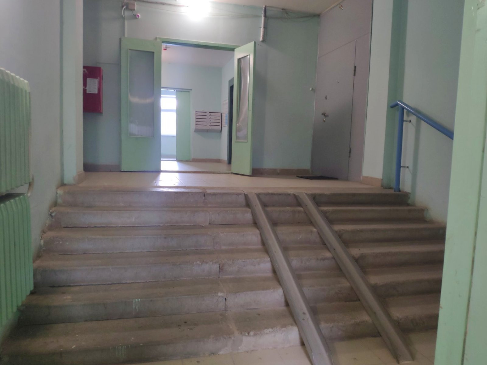 С подъезда 2 выхода, во двор и за дом, на парковку, прямо от лифта.