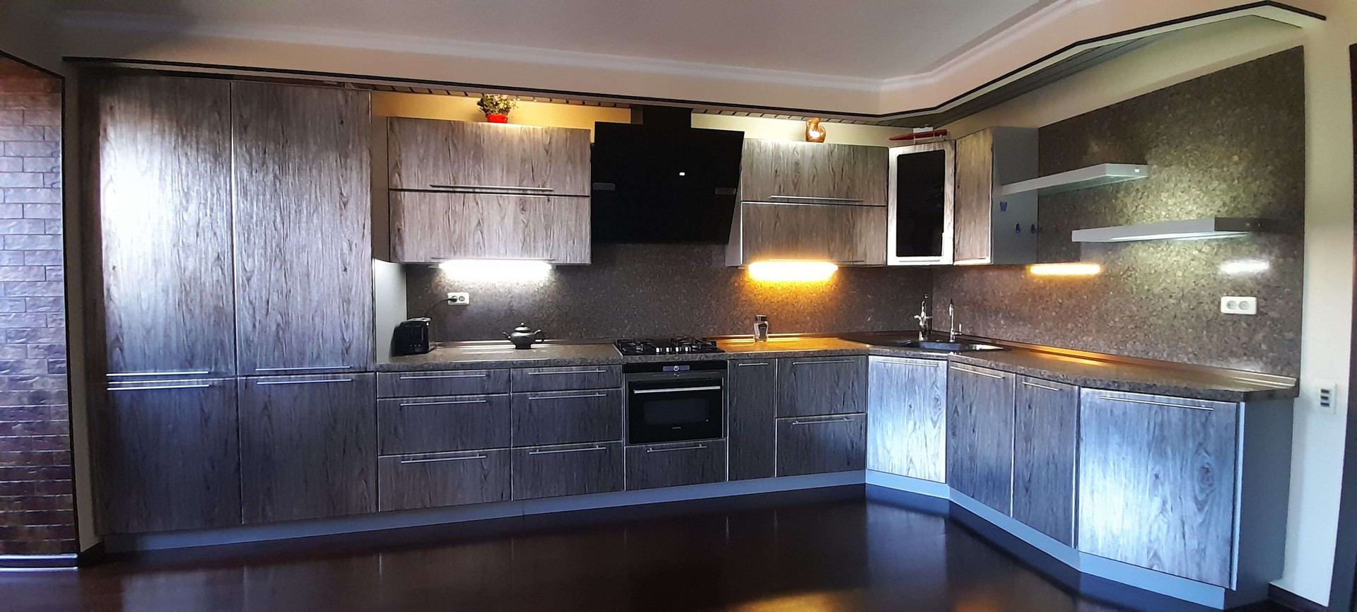 Остаётся в подарок встроенный кухонный гарнитур с техникой( посудомоечная машина, очиститель воды " Atoll", пищевая дробилка, многофункциональный духовой шкаф и двухкамерный холодильник (всё фирмы "Siemens"), сенсорный и рычажный кран для воды, газовая вытяжка "Kaiser", кондиционер "Tadilux", световая пузырьковая панель, встроенный камин ручной работы). Частично можем оставить еще мебель.