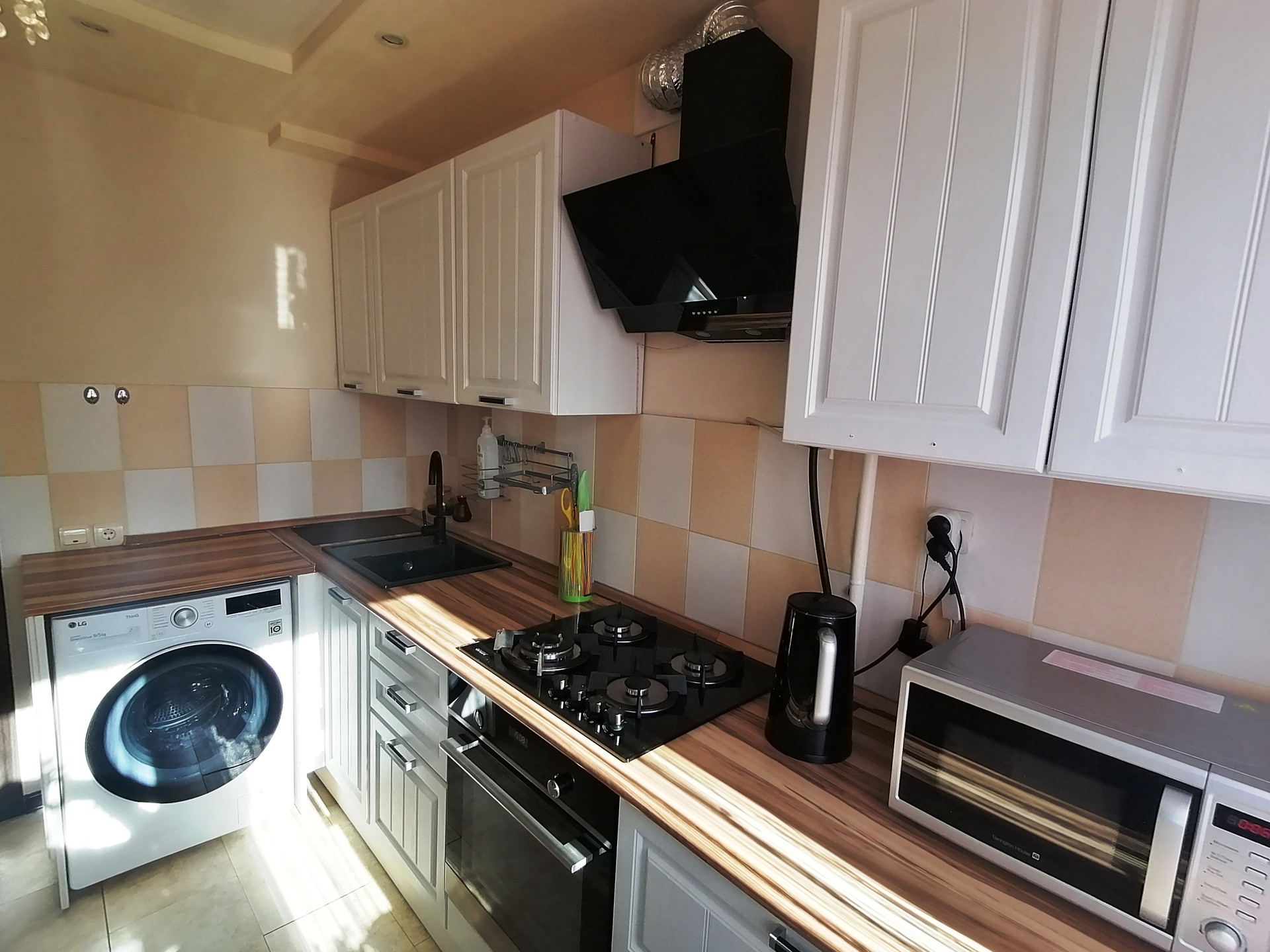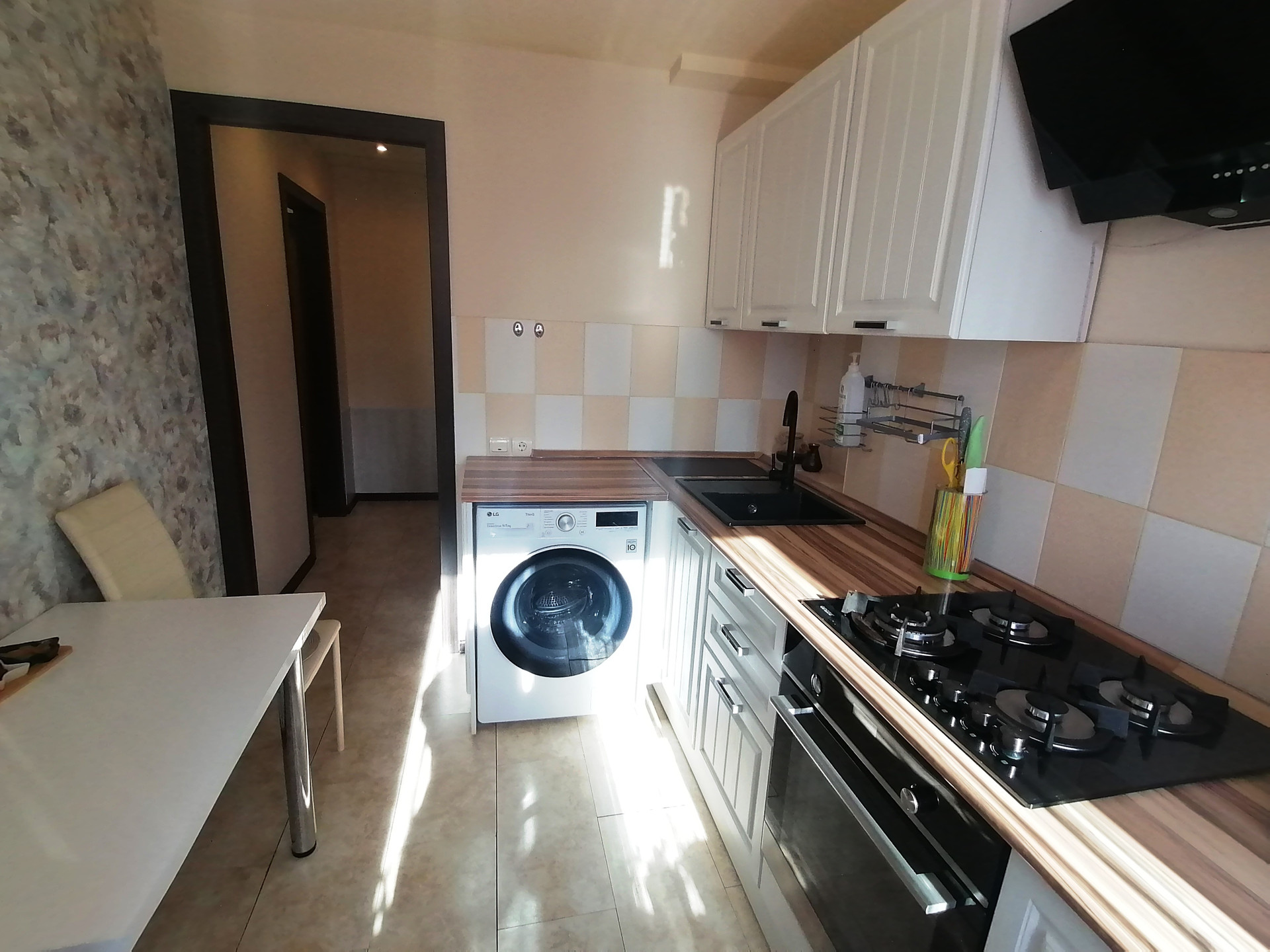 -оставляем водонагреватель, кухонный гарнитур и шкафы-купе