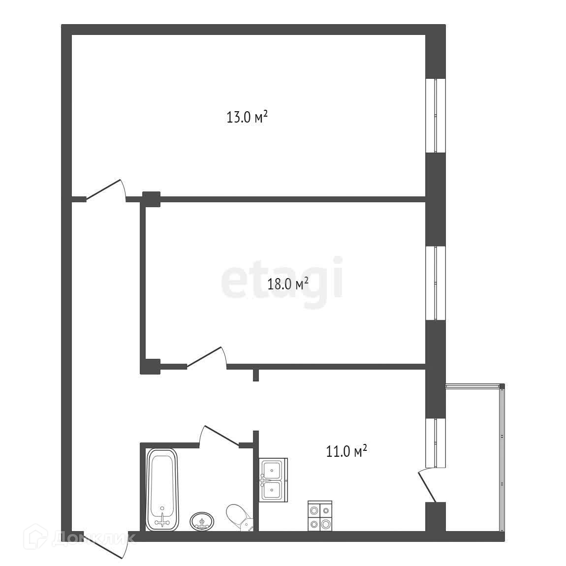 Общая площадь 60.4 м2