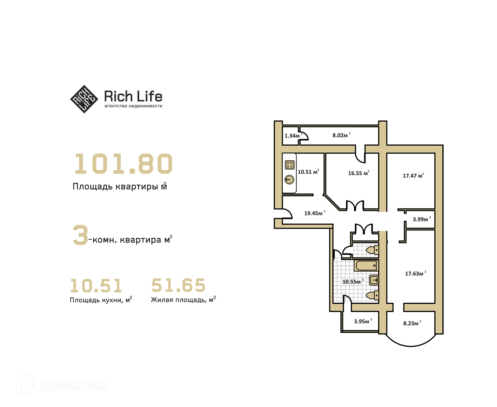 Ванная комната – 10,8 кв.м с выходом на лоджию, раздельный санузел;