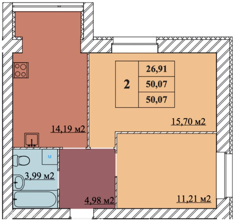 Общая площадь 50.07 м2