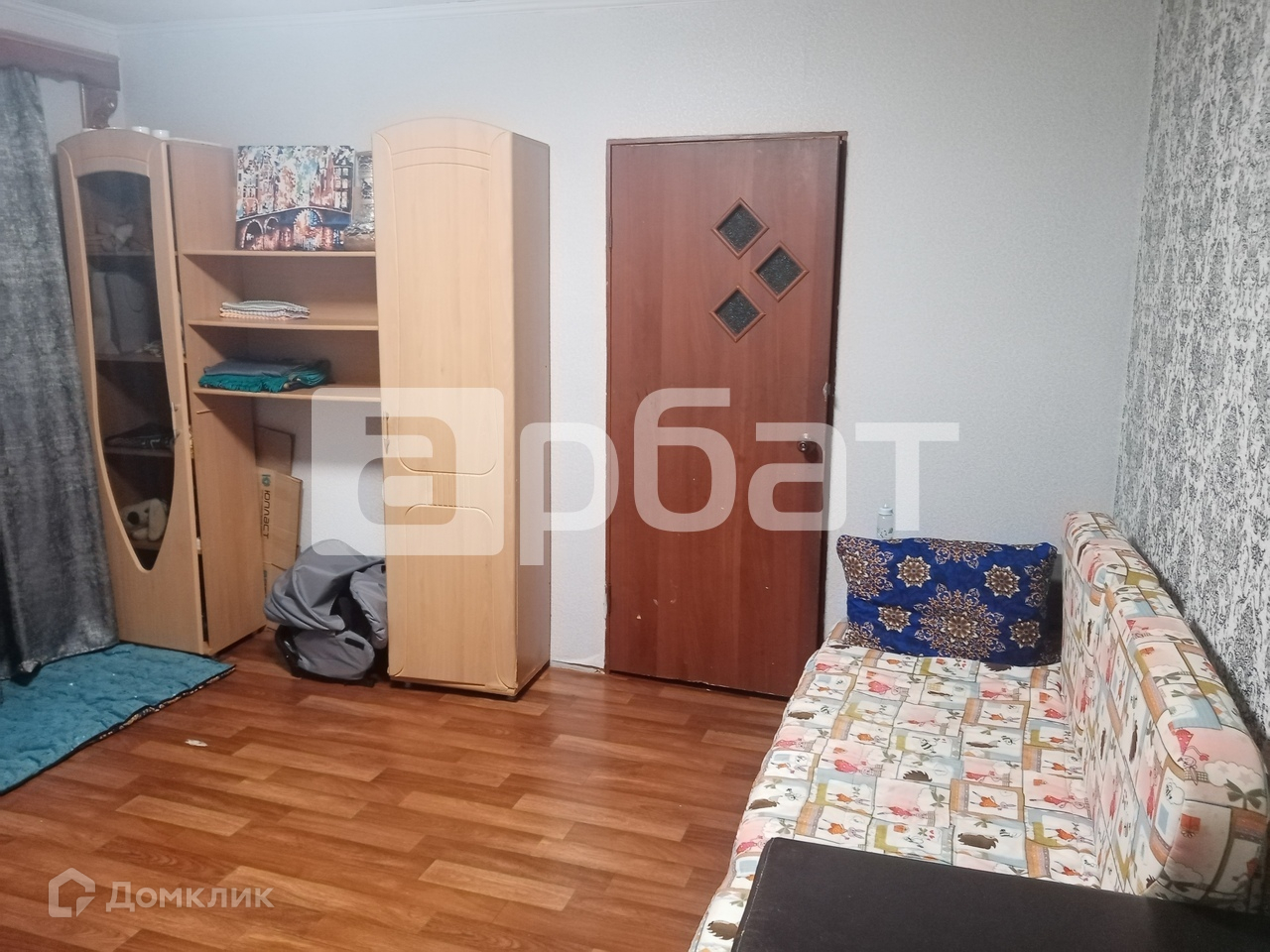 - В комнатах постелен линолеум , в кухне на полу ламинат.